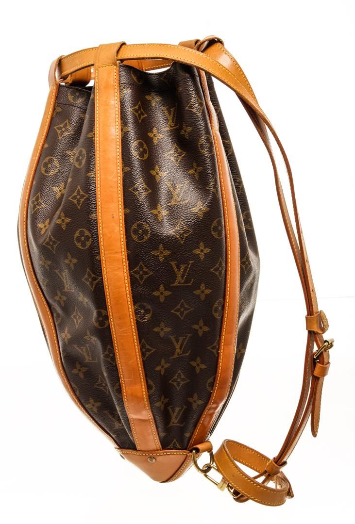 One Louis Vuitton Monogram Romeo Gigli Shoulder Bag. Item is sold AS-IS. All available information is listed in the description and shown in the photo. Louis Vuitton Monogram Romeo Gigli shoulder bag with brown coated canvas exterior, brown fabric lining, contrasting vachetta leather adjustable straps and trims, gold-tone hardware, drawstring closure, and one main compartment.