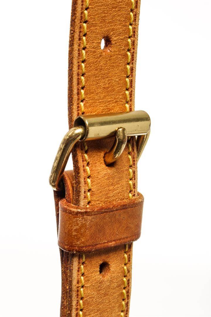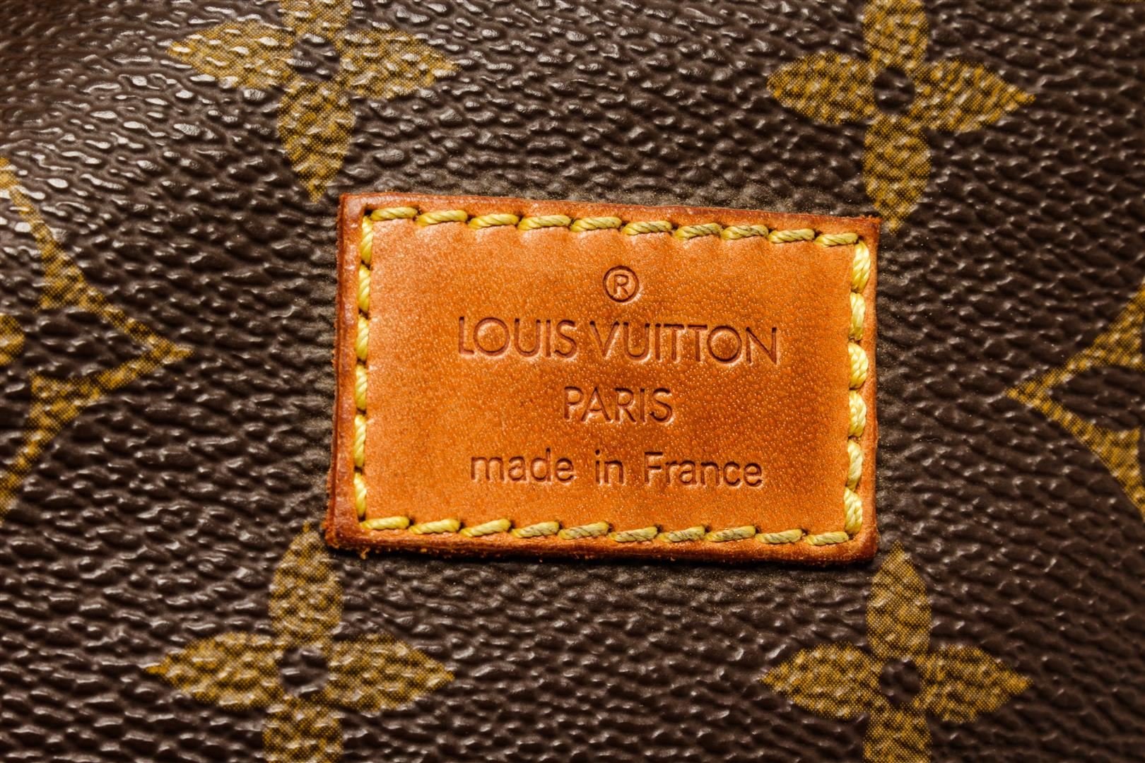 One Louis Vuitton Monogram Saumur 30 Shoulder Bag. Item is sold AS-IS. All available information is listed in the description and shown in the photo. Louis Vuitton Monogram Saumur 30 shoulder bag with coated canvas exterior, brown fabric lining, contrasting vachetta leather trims and adjustable strap, flap and buckle closure, gold-tone hardware, and two main compartments, one on each side.
