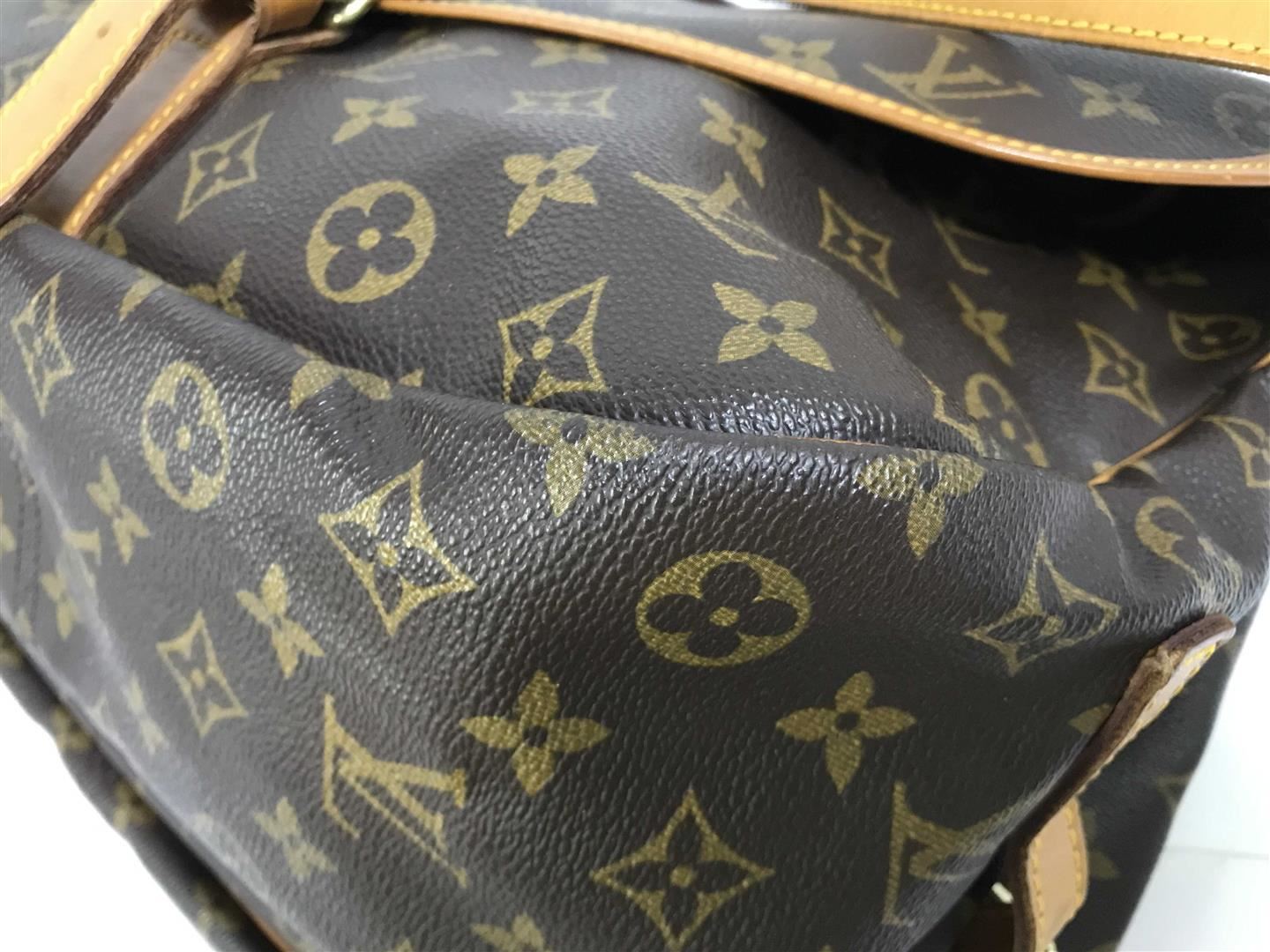 One Louis Vuitton Monogram Saumur 35. Item is sold AS-IS. All available information is listed in the description and shown in the photo. Louis Vuitton Monogram Saumur 35 with adjustable shoulder strap, gold tone hardware, fabric lining, interior pockets, buckle closre.