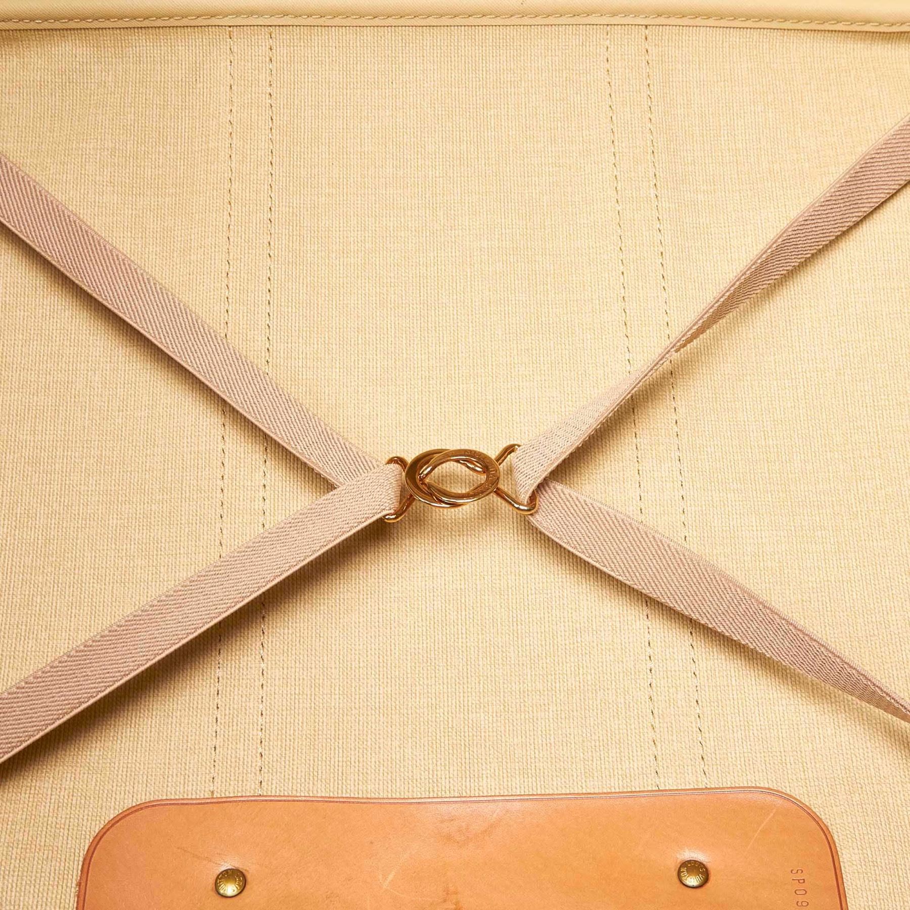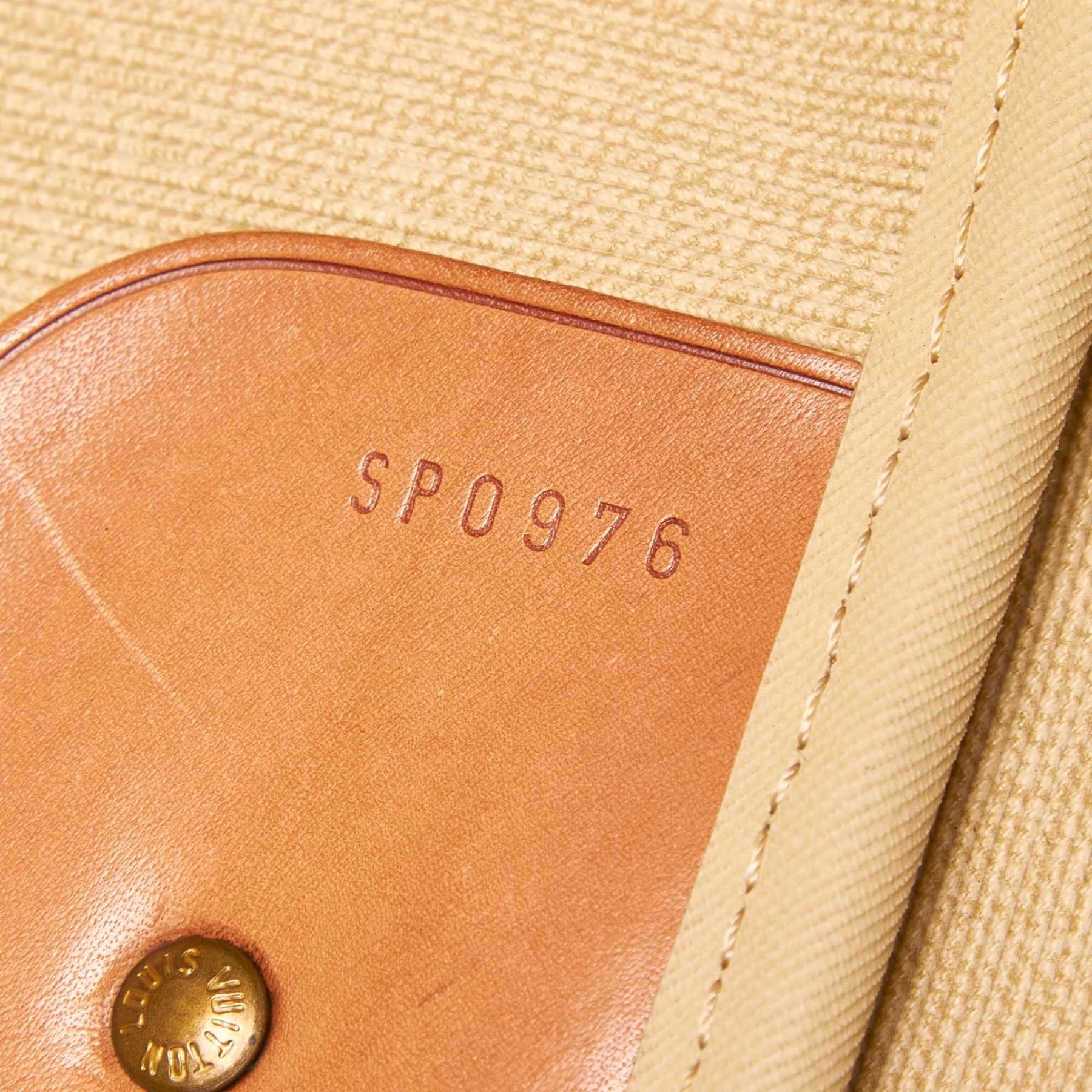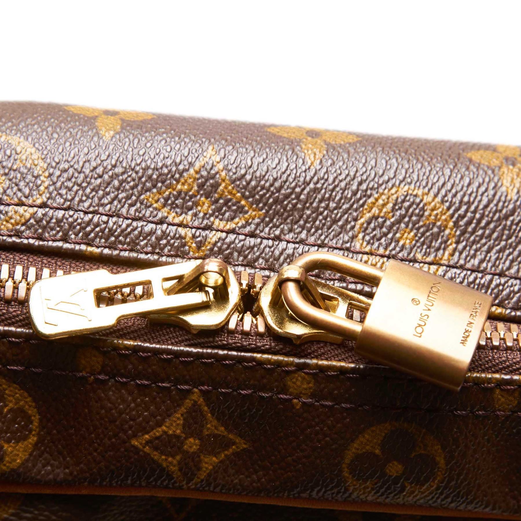 The Sirius 45 features a monogram canvas body with leather trim, rolled leather handles, a zip around closure, and an interior slip compartment. Canvas x Monogram Canvas x Leather x Vachetta Leather Brown Exterior front is stained and scratched. Exterior back is stained with water mark and scratched. Exterior handle is stained with water mark. Interior lining is stained. Interior pocket is stained and out of shape. Studs is rusty and scratched. Padlock is tarnished. Size: 34 x 43 x 16 Card: NO. Louis Vuitton pieces do not come with an authenticity card—please refer to the production date code within the bag for its age and as an authenticity reference. Made in: France