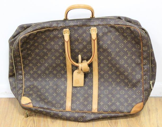 Vintage. With luggage tag. Approx. 16" H x 21" W x 7" D. Pre-owned condition. Stains to trim and lining. Please ask for more detailed pictures if you are interested.