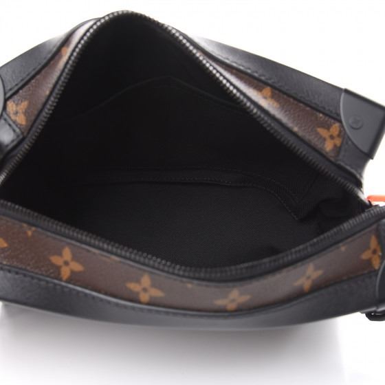 This shoulder bag from Virgil Abloh's collection is crafted in signature Louis Vuitton monogram canvas. The tote features an adjustable black shoulder strap, matte black accent hardware, and opens to a black fabric interior with patch pockets.