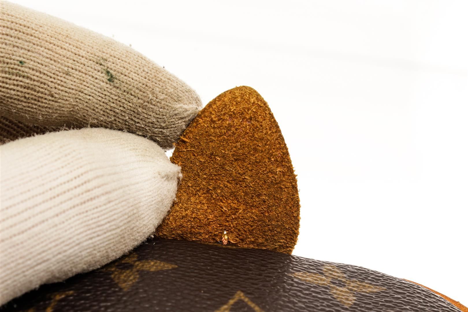 One Louis Vuitton Monogram Speedy 25 Handbag. Item is sold AS-IS. All available information is listed in the description and shown in the photo. Louis Vuitton Monogram 25 handbag with brown coated canvas exterior, brown fabric lining, contrasting vachetta leather trims and top handles, gold-tone hardware, zipper closure, and one main compartment with one slip pocket. There is a stain in the canvas lining as shown in pictures!