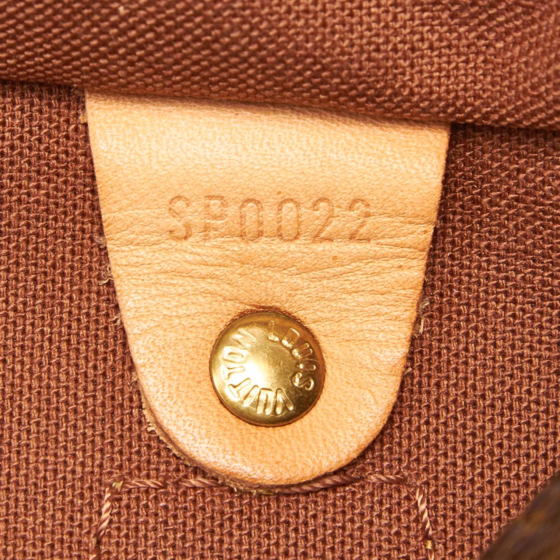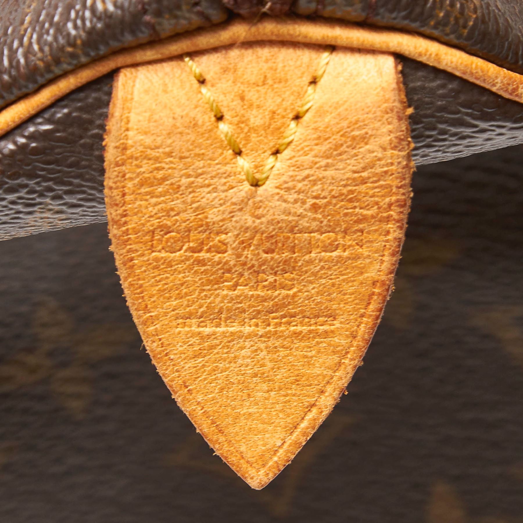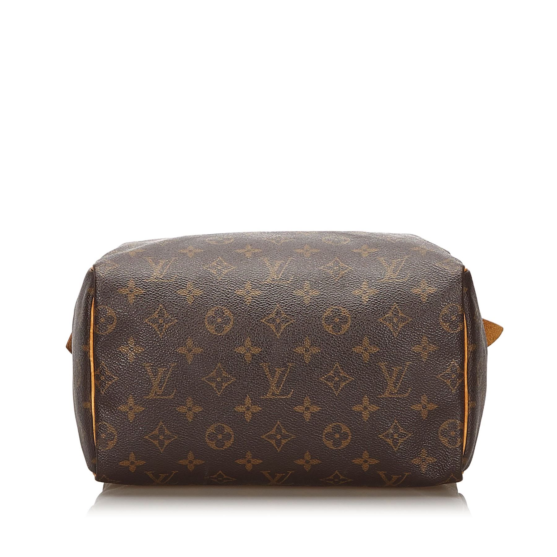 The Speedy 25 features a monogram canvas body, rolled leather handles, a top zip closure, and an interior slip pocket. Canvas x Monogram Canvas x Leather x Vachetta Leather Brown Exterior front is stained with water mark. Exterior back is stained with water mark. Exterior handle is stained, discolored and scratched. Exterior corners is scratched. Exterior side is scratched. Zipper is scratched. Studs is scratched. Size: 19 x 25 x 15 Card: NO. Louis Vuitton pieces do not come with an authenticity card—please refer to the production date code within the bag for its age and as an authenticity reference. Made in: France