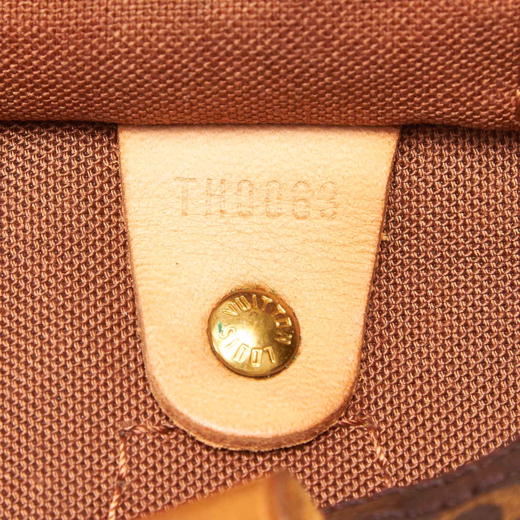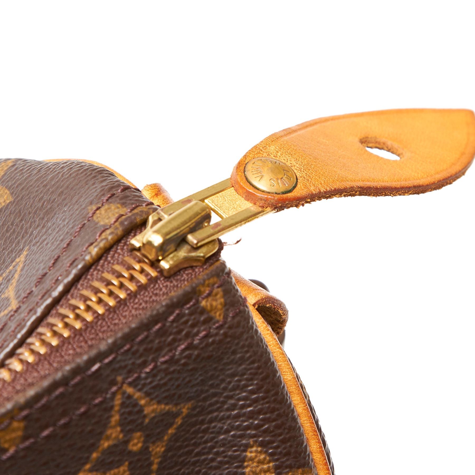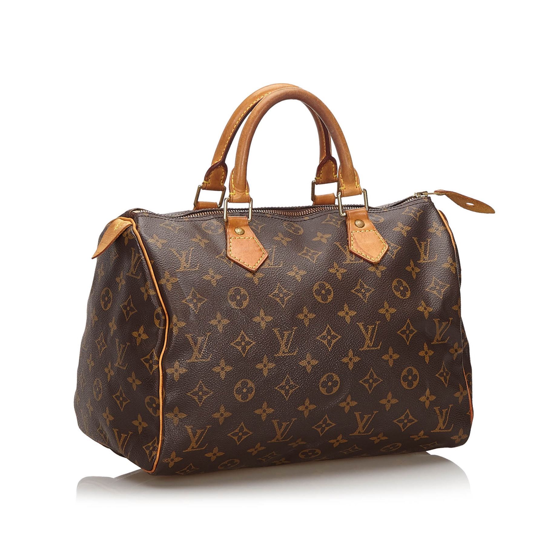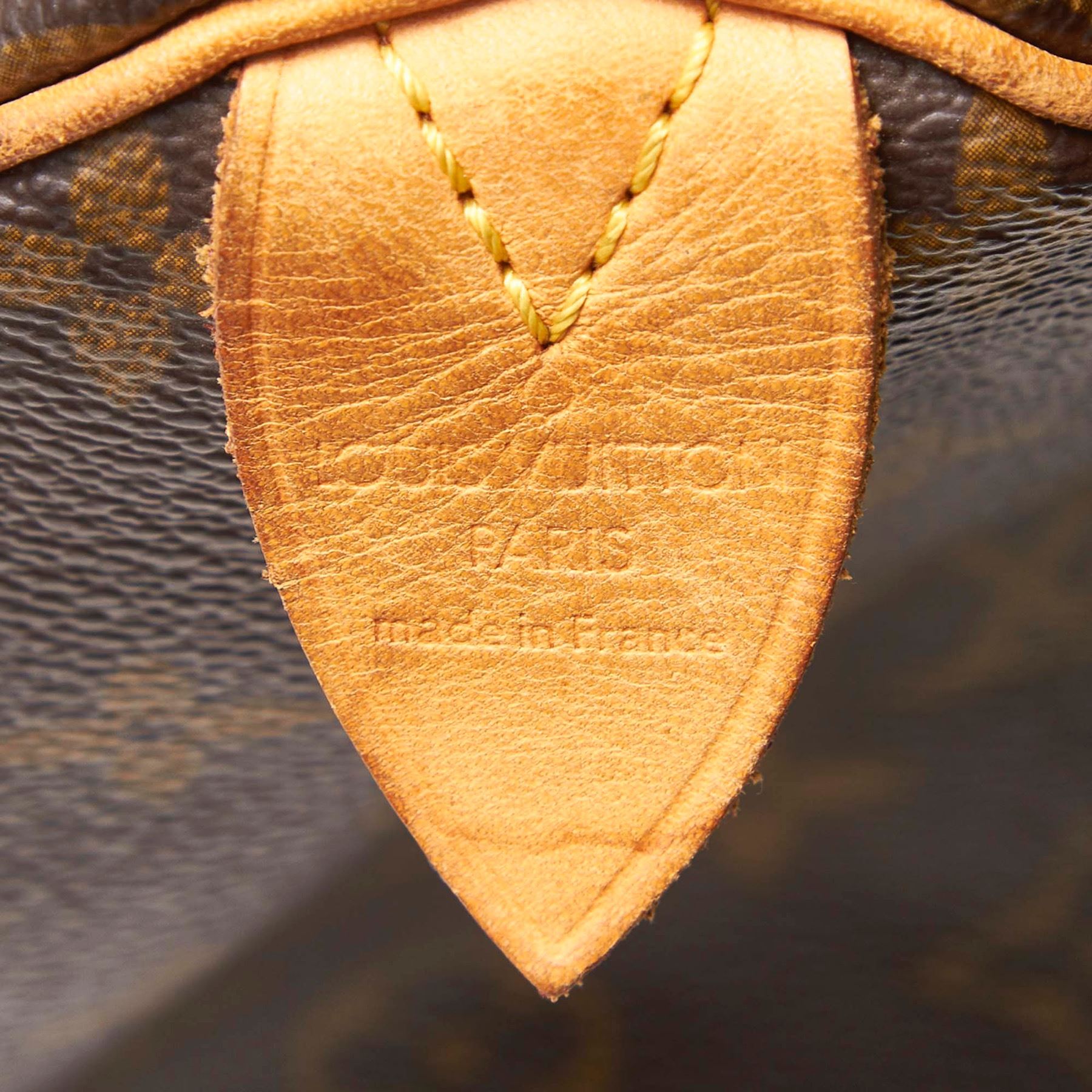 The Speedy 30 features the Monogram canvas, vachetta handles and trim, a top zip closure, and an interior pocket. Canvas x Monogram Canvas x Leather x Vachetta Leather Brown Exterior front is stained with water mark. Exterior back is stained with water mark. Exterior bottom is stained with water mark. Exterior handle is stained, discolored and scratched. Exterior corners is scratched. Exterior side is stained and scratched. Interior lining is stained with water mark. Interior pocket is stained. Zipper is scratched. Studs is rusty and scratched. Key is tarnished. Size: 20 x 30 x 10.5 Card: NO. Louis Vuitton pieces do not come with an authenticity card—please refer to the production date code within the bag for its age and as an authenticity reference. Made in: France