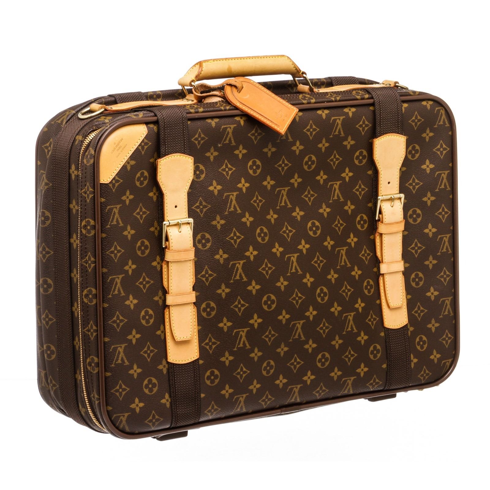 Style: Louis Vuitton Brown Monogram Canvas Leather Satellite 53 Suitcase.