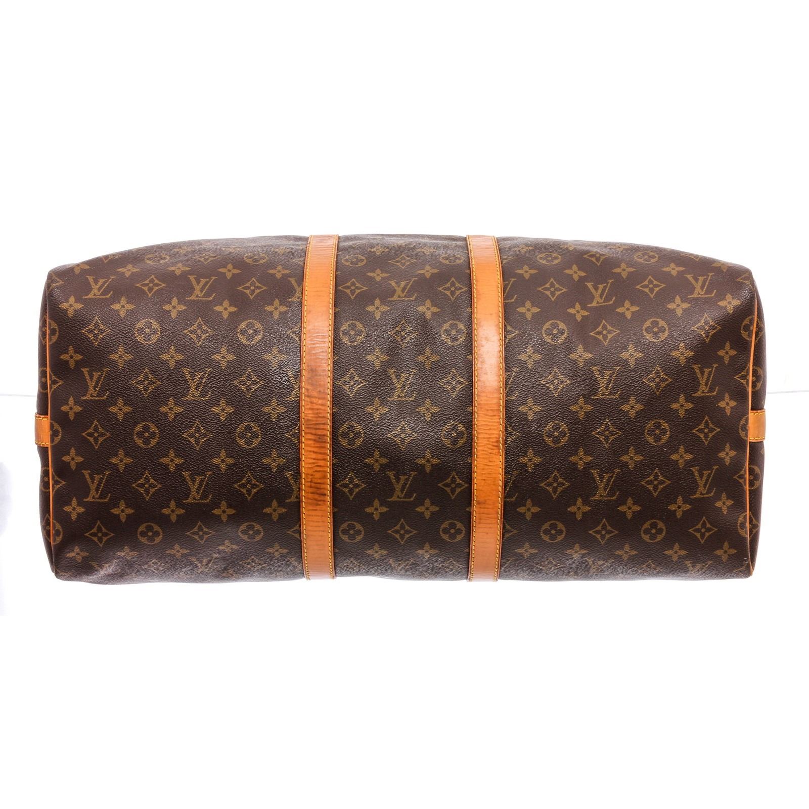 Style: Louis Vuitton Monogram Canvas Leather Keepall 55 cm Bandouliere Duffle Bag Luggage