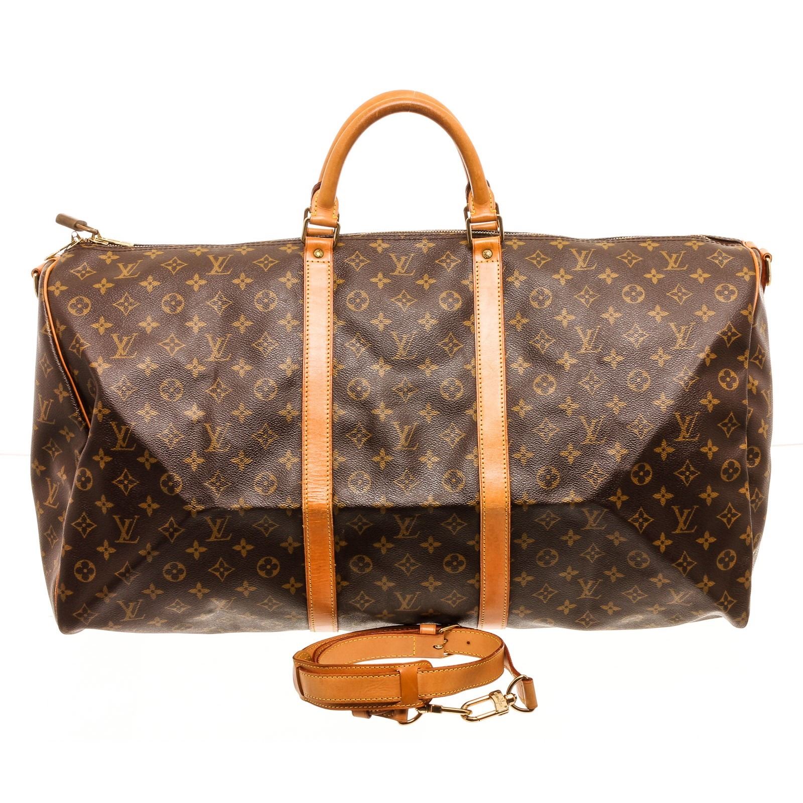 Style: Louis Vuitton Monogram Canvas Leather Keepall 60 cm Bandouliere Duffle Bag Lugagge
