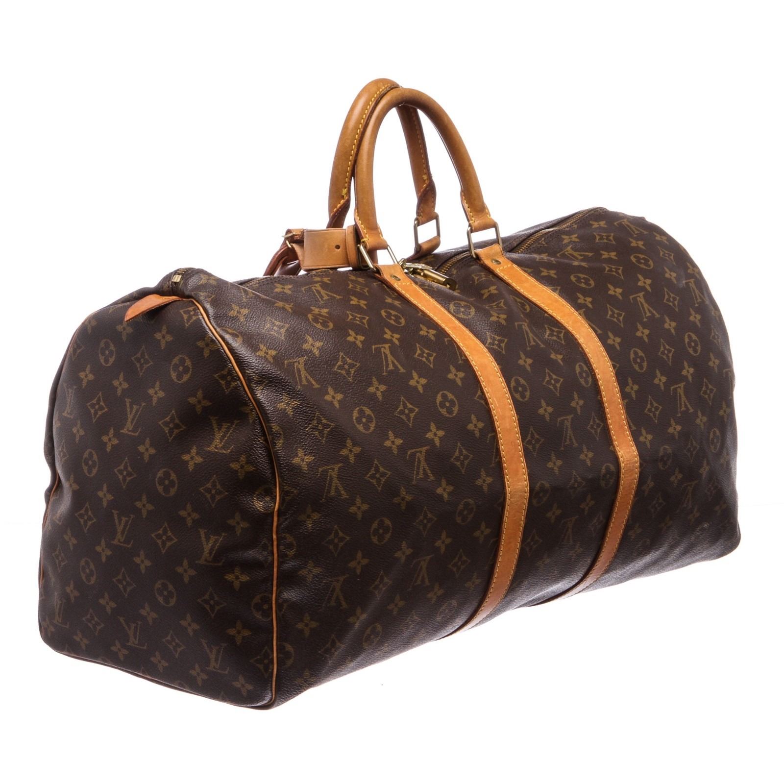 Style: Louis Vuitton Monogram Canvas Leather Keepall 55 cm Duffle Bag Luggage