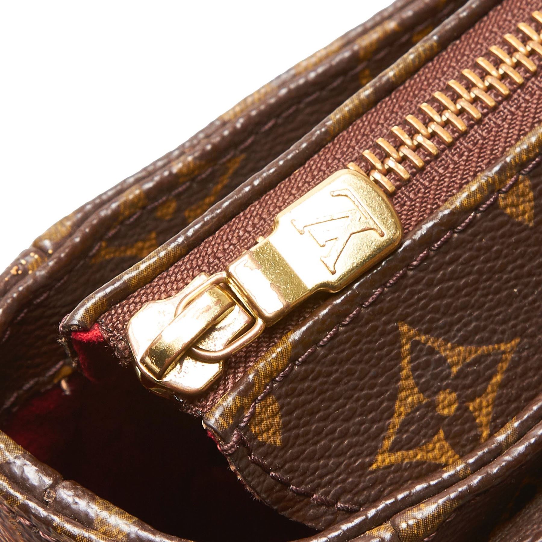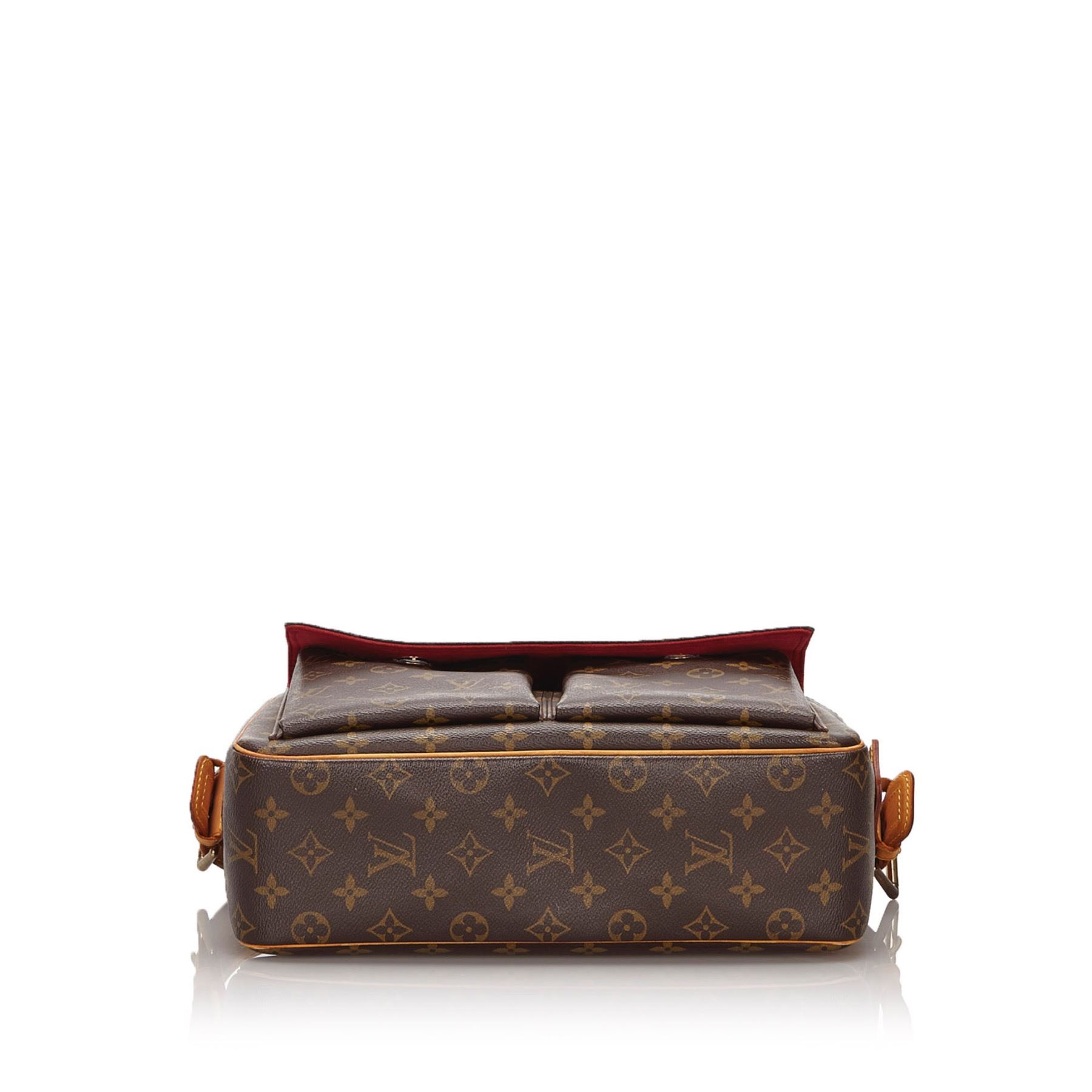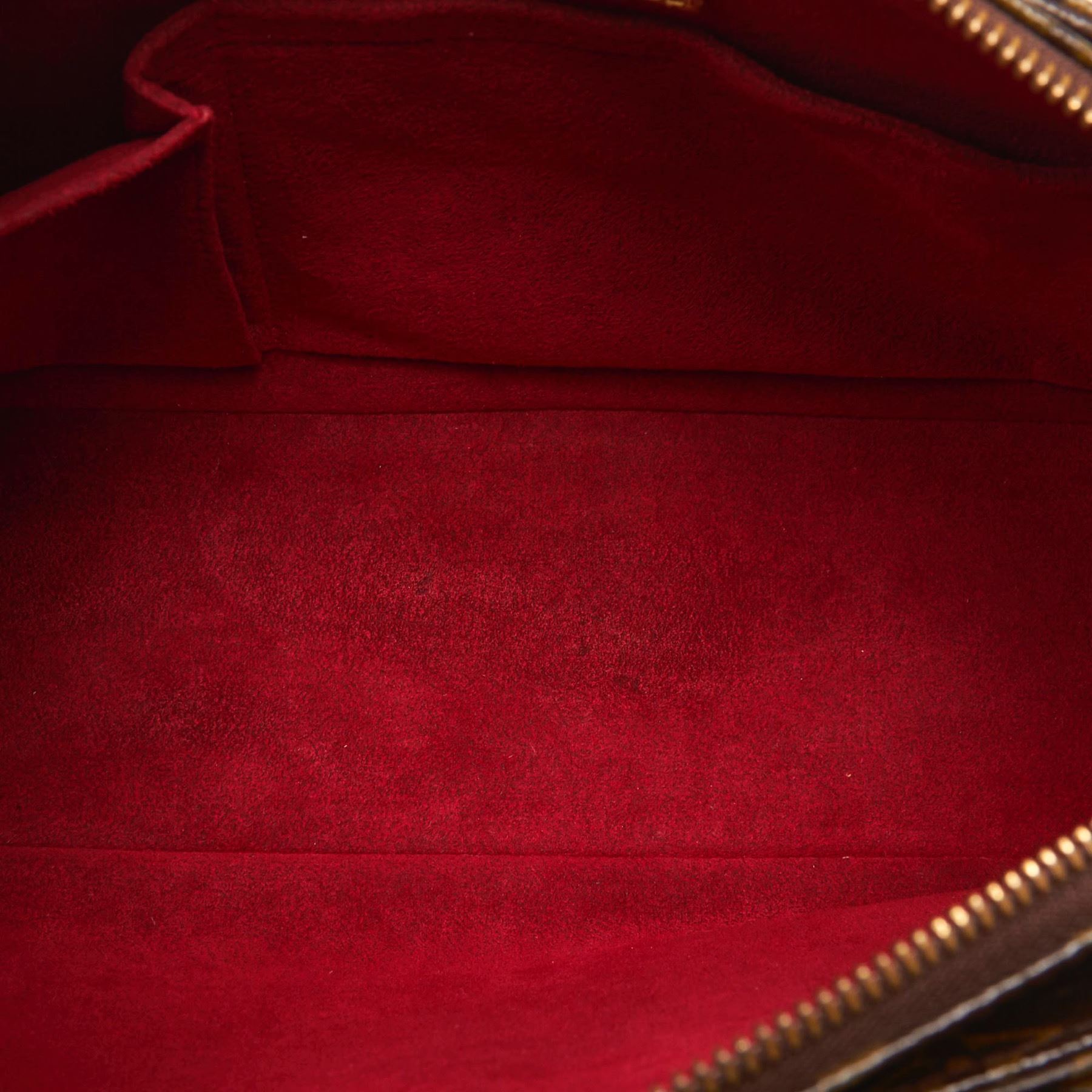 The Viva Cite GM features a monogram canvas body, exterior flap pockets, an adjustable leather shoulder strap, a top zip closure, and interior slip pockets. Canvas x Monogram Canvas x Leather x Vachetta Leather Brown Exterior front is scratched. Exterior back is scratched. Exterior handle is stained with water mark, discolored, cracked and scratched. Exterior pocket is stained. Exterior corners is scratched. Exterior side is stained. Interior lining is stained. Zipper is scratched. Buckle is rusty and scratched. Size: 32 x 22 x 10 Card: NO. Louis Vuitton pieces do not come with an authenticity card—please refer to the production date code within the bag for its age and as an authenticity reference. Made in: France