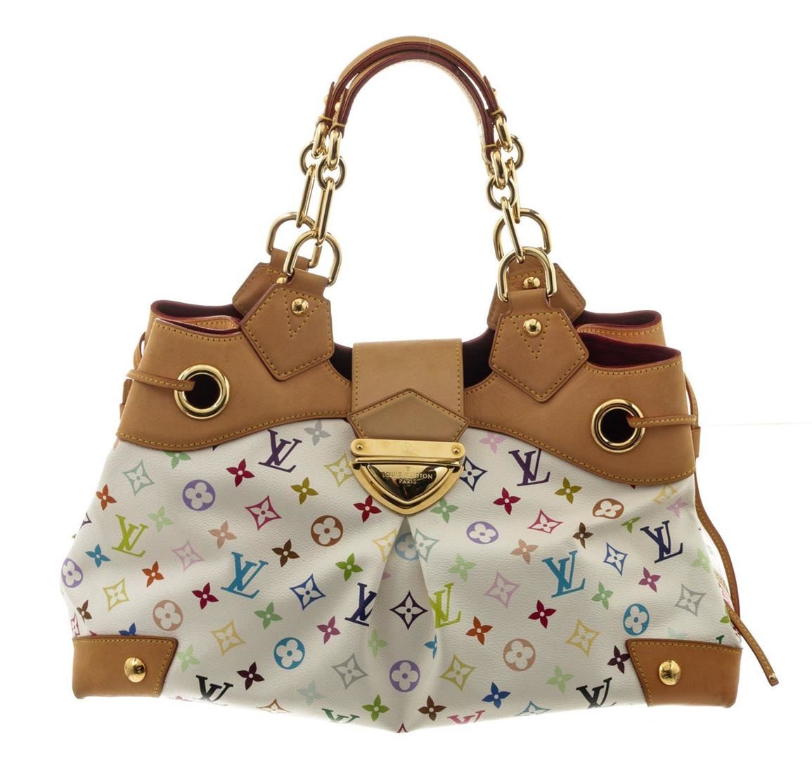 Louis Vuitton Multicolor Monogram Canvas Ursula Satchel Bag with monogram canvas, gold-tone hardware, trim tan vachetta leather, interior slip pocket, dual top handle and flap closure.