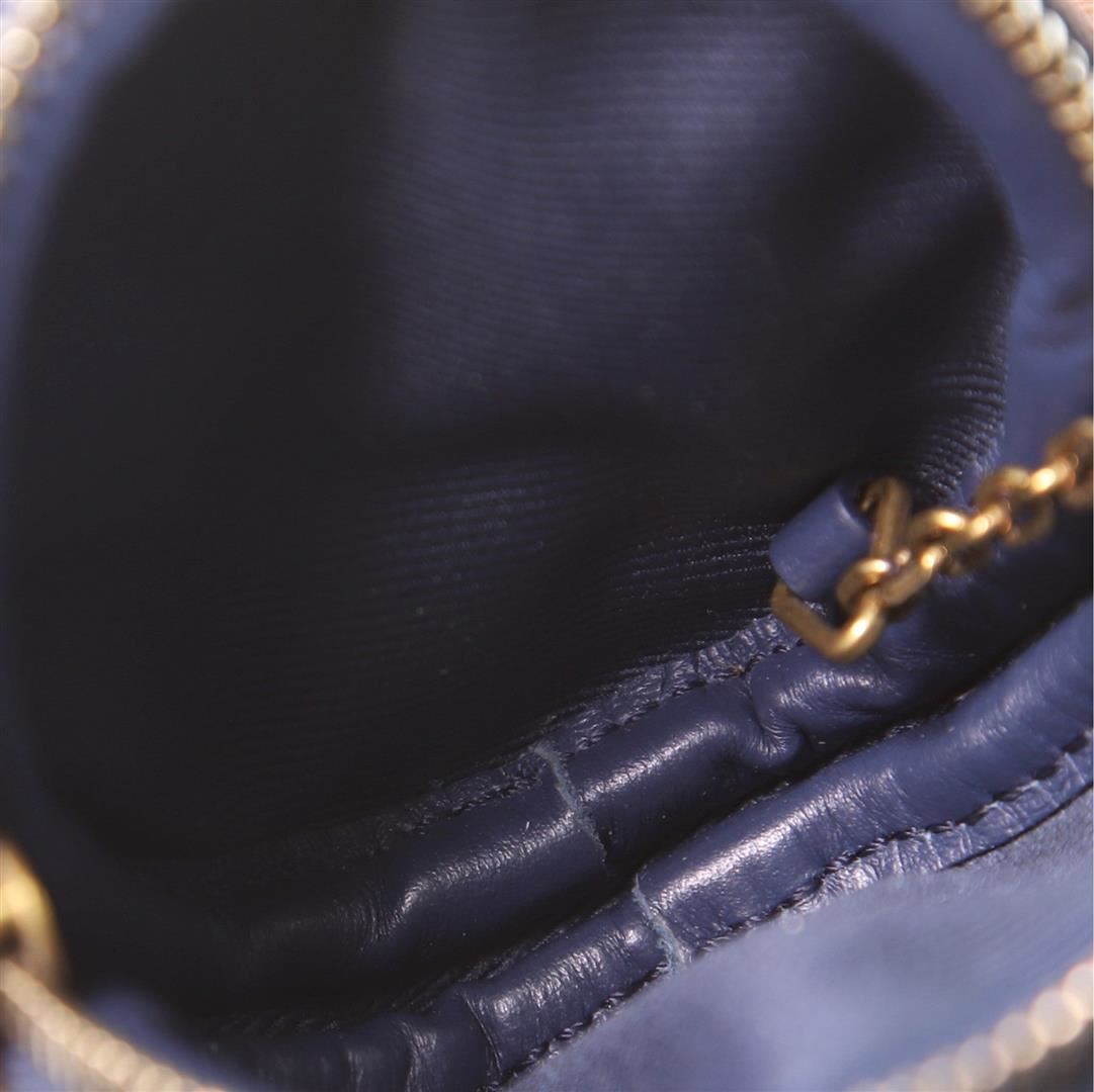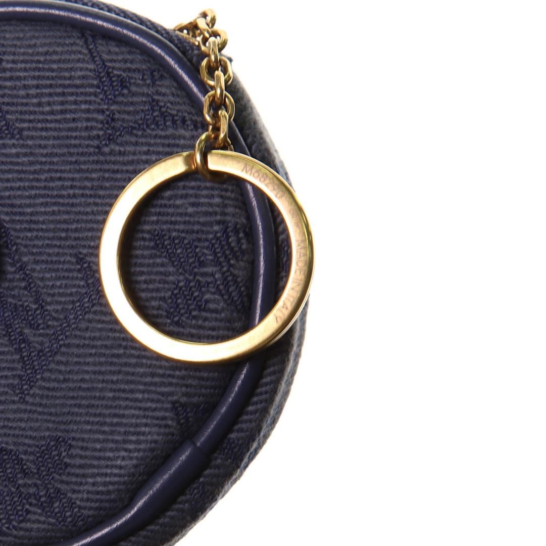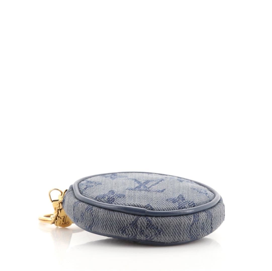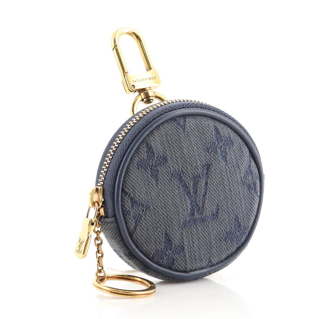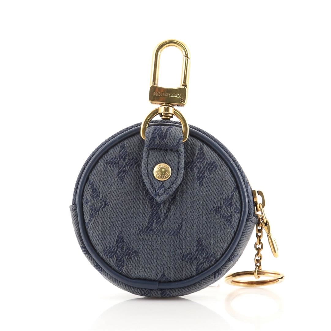Louis Vuitton Navy Blue Monogram Denim Round Bag Charm and Key Holder Condition Details: Odor in interior. Moderate wear and discoloration on exterior, slight splitting on interior side corner, scratches and tarnish on hardware. Measurements: Height