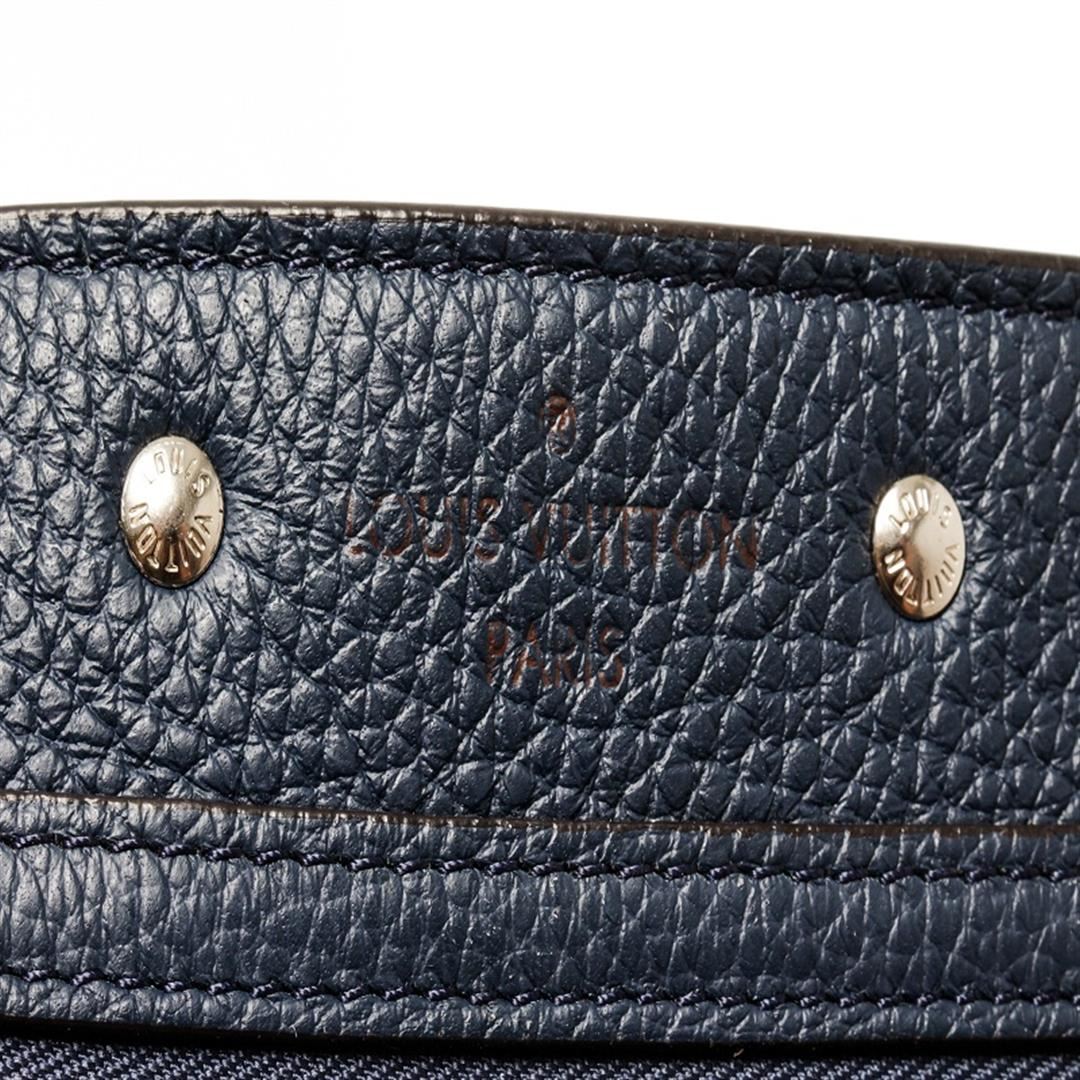 One Louis Vuitton Navy Leather Armand Messenger bag. Item is sold AS-IS. All available information is listed in the description and shown in the photo. Louis Vuitton navy leather Armand messenger bag with leather exterior, orange suede lining, silver-tone hardware, zipper closure, adjustable fabric strap, one exterior zip pocket, and one main compartment with a slip pocket. Height: 12.5" Width: 14" Depth: 5", Handle Drop: / 31.75 x 35.56 x 12.7 Cm