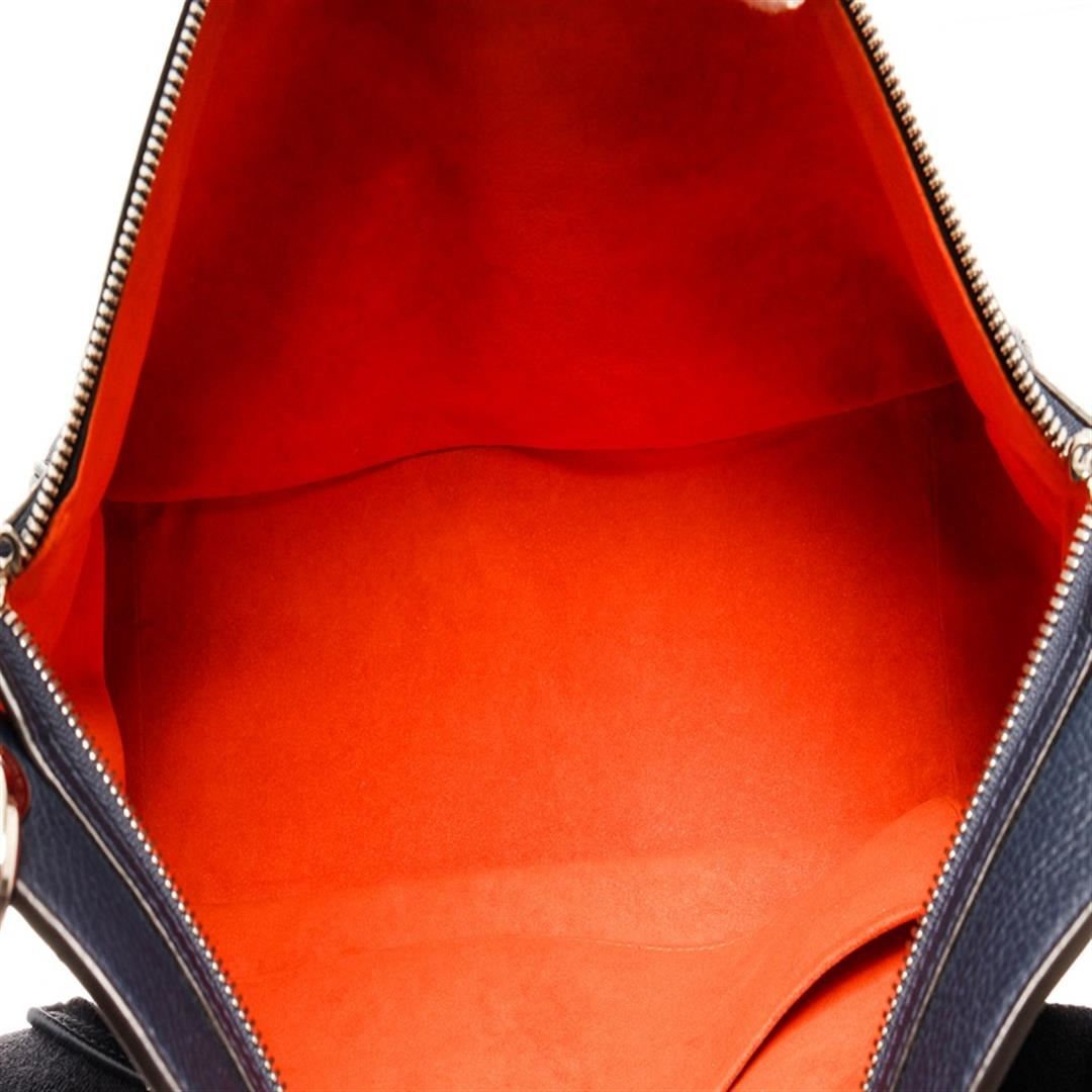 One Louis Vuitton Navy Leather Armand Messenger bag. Item is sold AS-IS. All available information is listed in the description and shown in the photo. Louis Vuitton navy leather Armand messenger bag with leather exterior, orange suede lining, silver-tone hardware, zipper closure, adjustable fabric strap, one exterior zip pocket, and one main compartment with a slip pocket. Height: 12.5" Width: 14" Depth: 5", Handle Drop: / 31.75 x 35.56 x 12.7 Cm