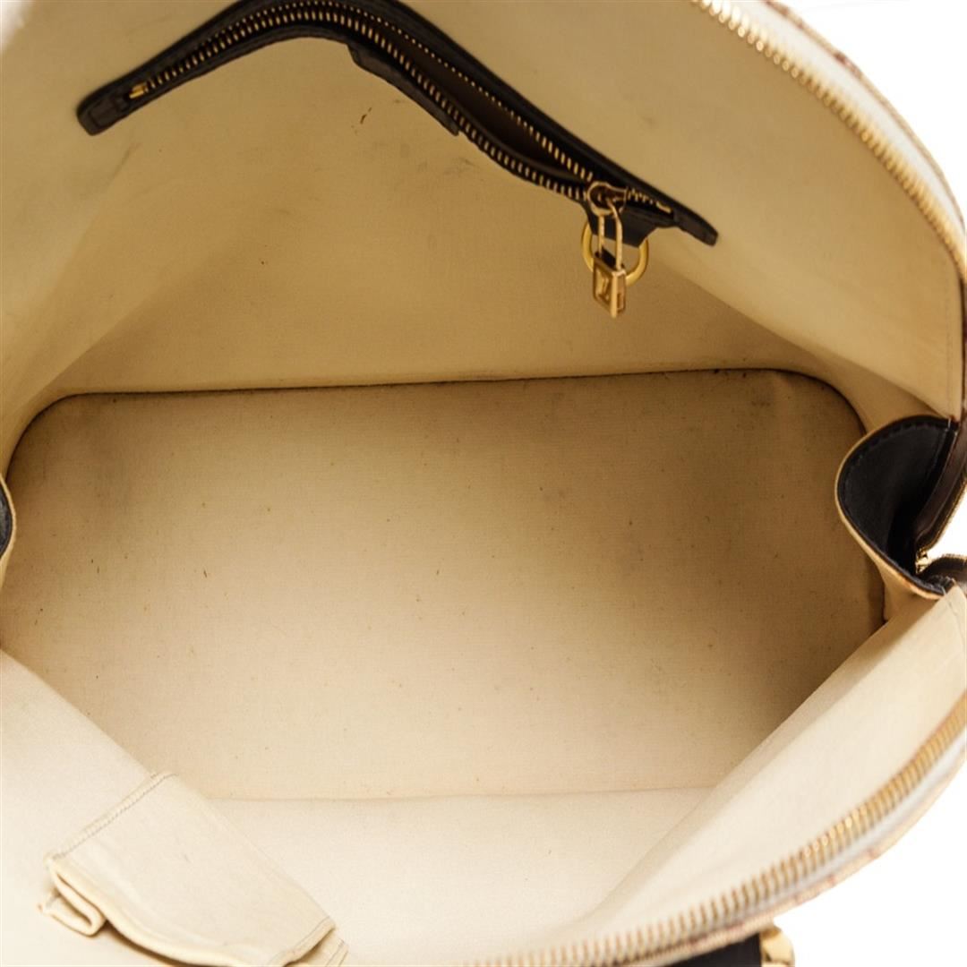 One Louis Vuitton Neutrals Canvas Alma Haut Top Handle Bag. Item is sold AS-IS. All available information is listed in the description and shown in the photo. Louis Vuitton neutrals canvas Alma Haut top handle bag with monogram canvas exterior, beige fabric lining, black leather trims and top handles, gold-tone hardware, zipper closure, and one main compartment with one zip pocket. Canvas is fading, lining has some stains as shown in pictures. Height: 13.25" Width: 12.75" Depth: 4.25", Handle Drop: 5.75" / 33.65 x 32.38 x 10.79 Cm