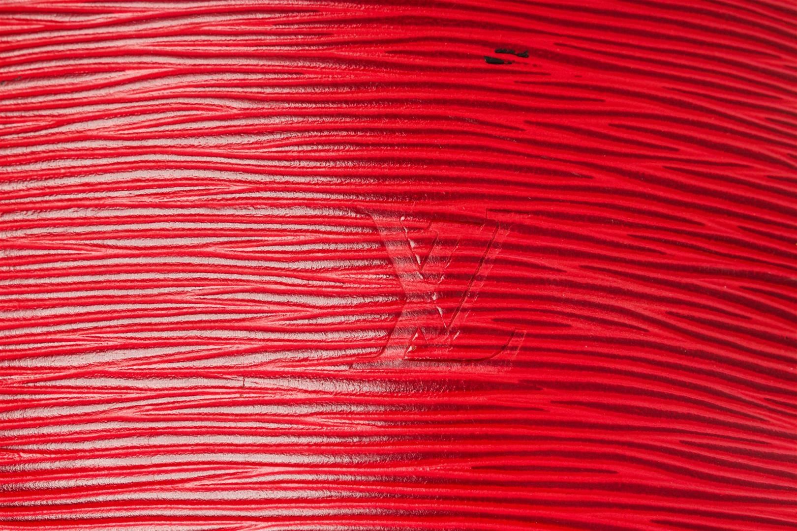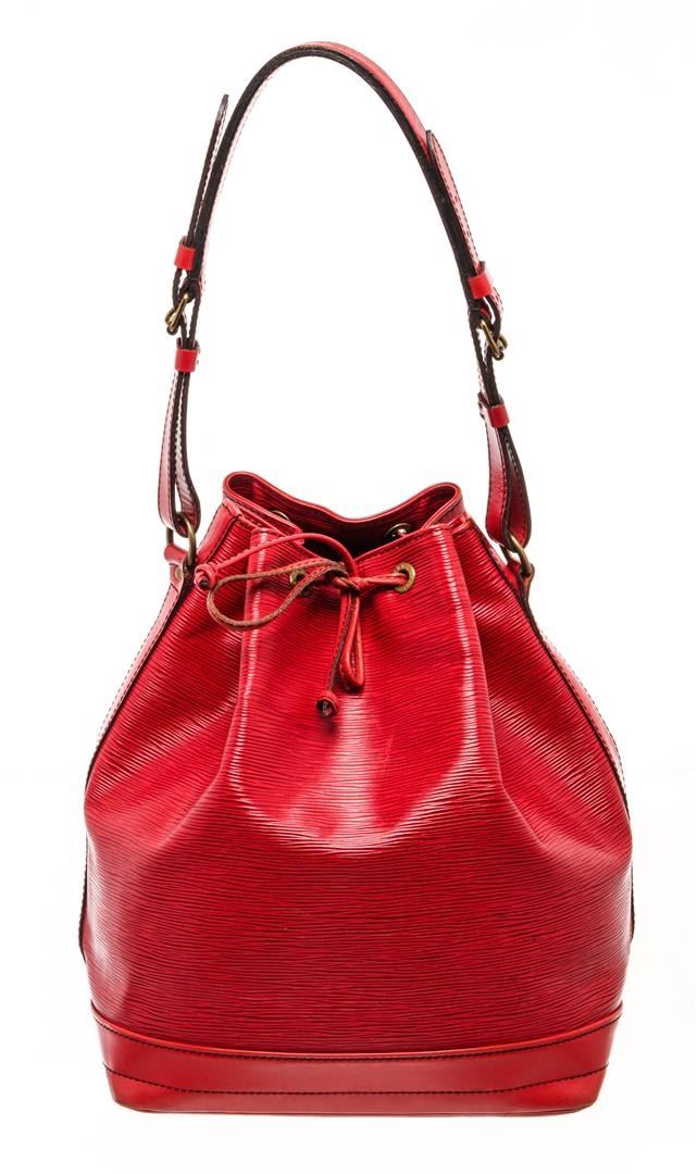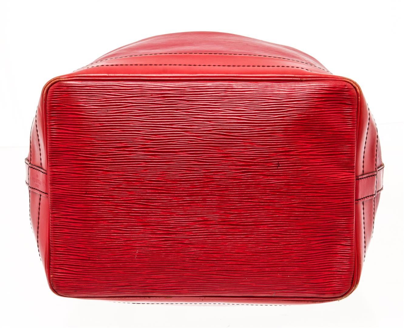 Louis Vuitton Noe Shoulder Bag Red Epi Leather. Brand: Louis Vuitton, Style: Noe, Type: Shoulder Bag, Exterior Color: Red, Exterior Material: Epi Leather, Interior Color: Red, Interior Material: Alcantara, Closure: Drawstring, Handle/Strap Type: Adjustable Shoulder Strap, Length: 1N/A.5", Width: 7.5", Height: 13.5", Strap Drop: 12". Condition: Corner/edge wear. Additional Information: Gold Hardware. Item is sold AS-IS and all information pertaining to this lot is available in the photos or this description.