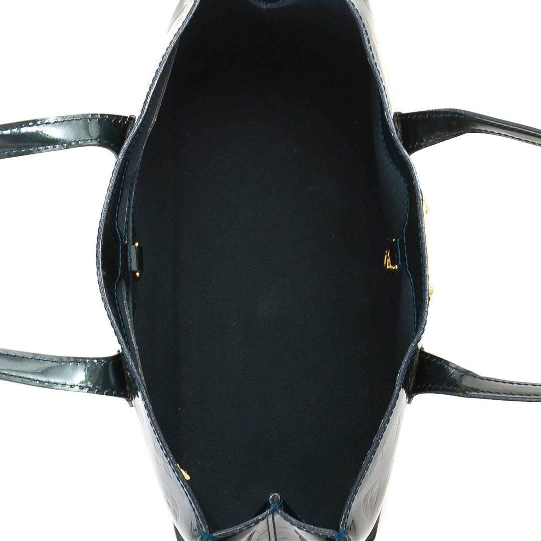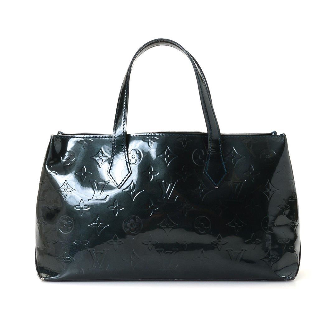 Louis Vuitton Nuit Monogram Wilshire PM Shoulder Bag with gold-tone hardware, dual flat top handles, logo placard at front face, tonal canvas lining, single zip pocket at interior wall and magnetic closure at top. Length: 4.5 in / 11 cm Width: 12
