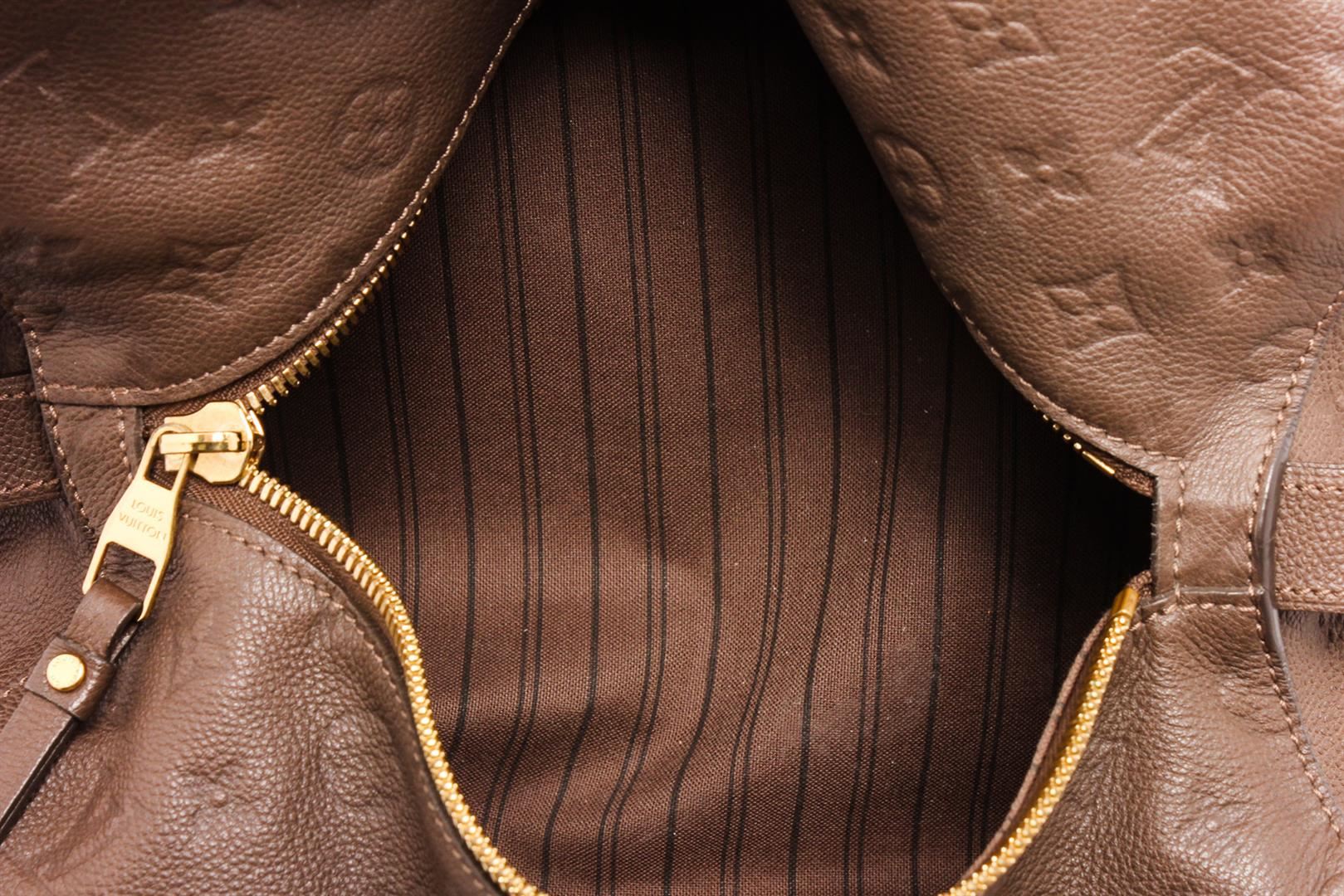 Ombre monogram leather Louis Vuitton Empreinte Inspirée shoulder bag with brass hardware, dual flat shoulder straps, single exterior pocket with zip closure, tonal striped canvas lining, three slip pockets at interior walls and zip closure at top.