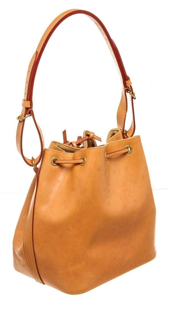 Louis Vuitton Orange Canvas Leather Noe PM Bucket Bag with material epi leather, gold-tone hardware, trim tan vachetta leather, shoulder adjustable strap and drawstring closure.