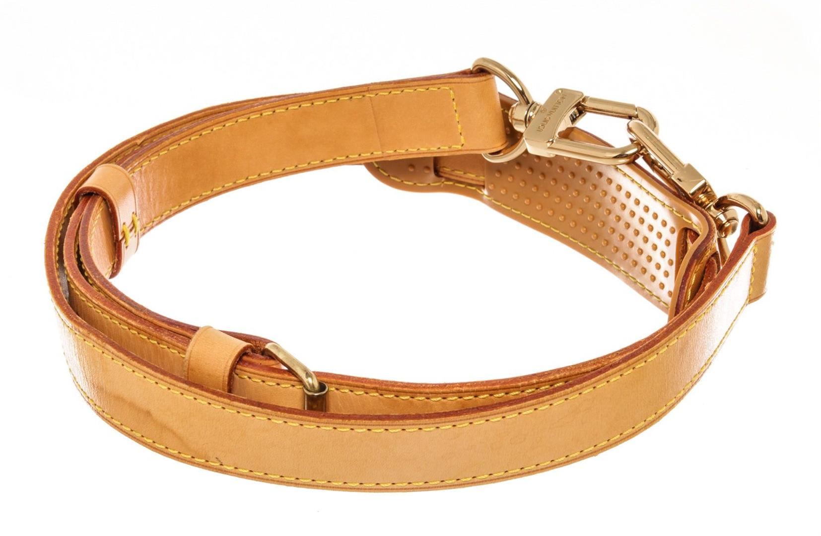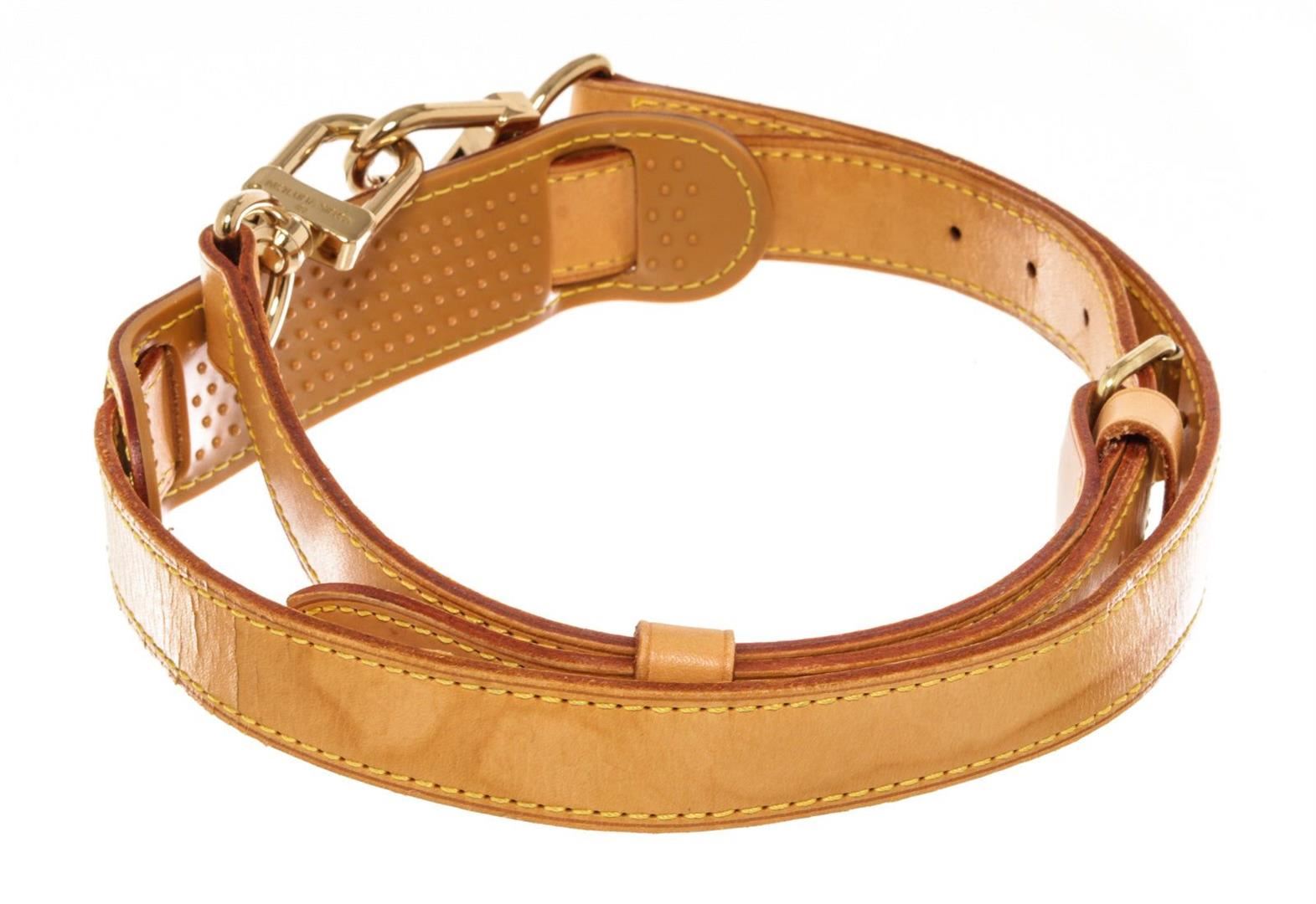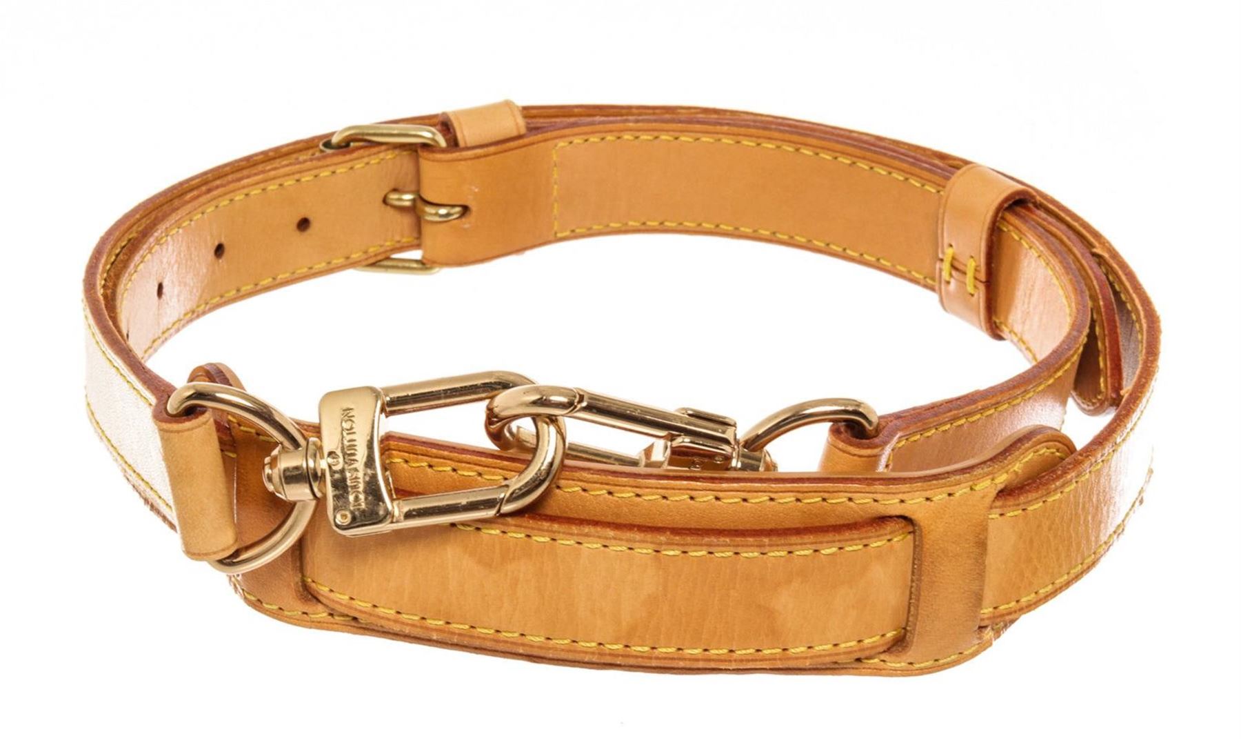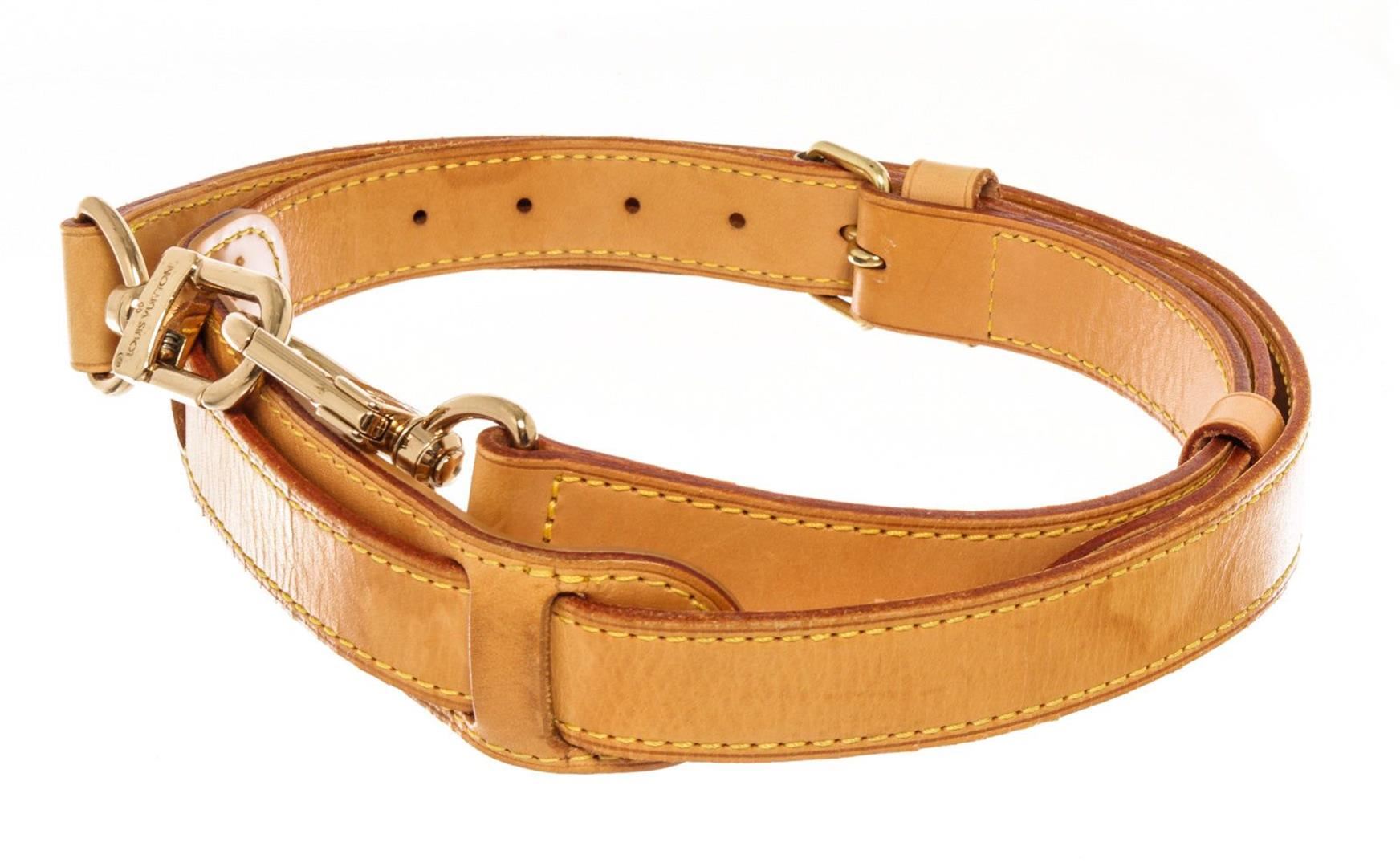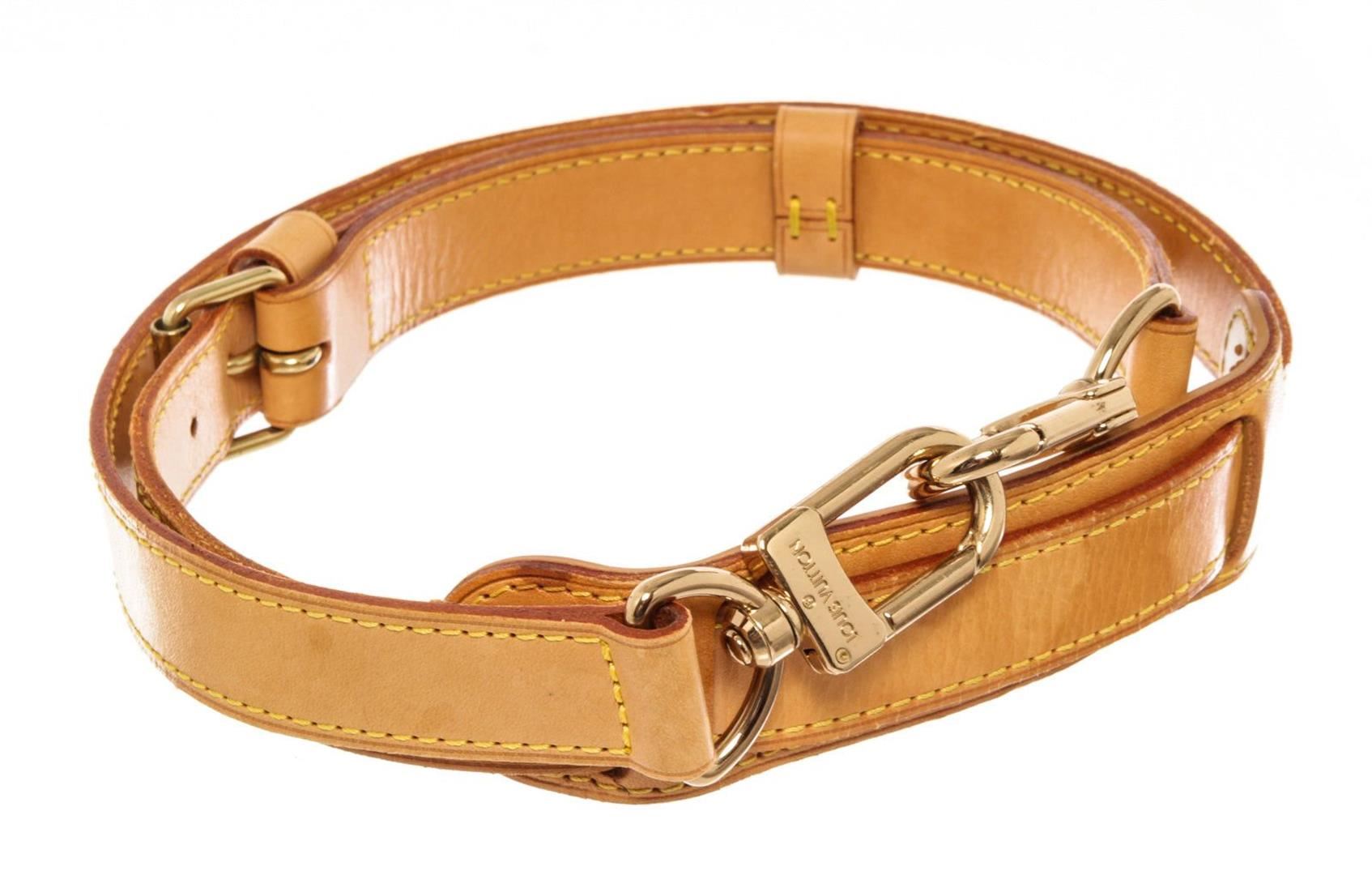 Louis Vuitton Orange Leather Extender Strap with leather, tan vachetta leather, turn lock closure.
