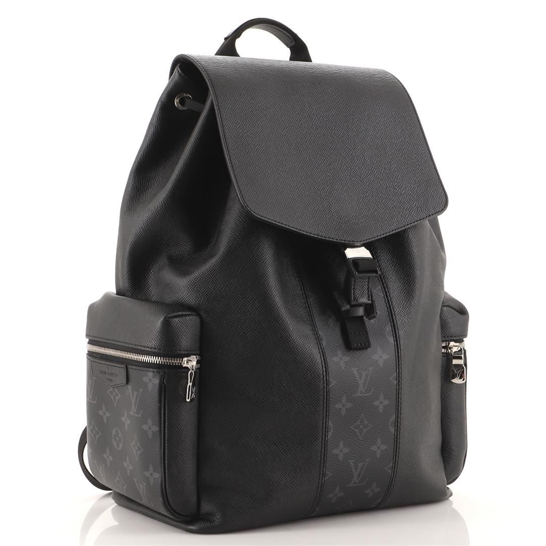 Louis Vuitton Outdoor Backpack. Brand: Louis Vuitton, Style: Outdoor, Type: Backpack, Exterior color: Black Taigarama, Exterior material: Leather, Interior color: Black, Interior material: Canvas, Length: 11.5, Width: 7.5, Height: 18. Item is sold AS-IS a