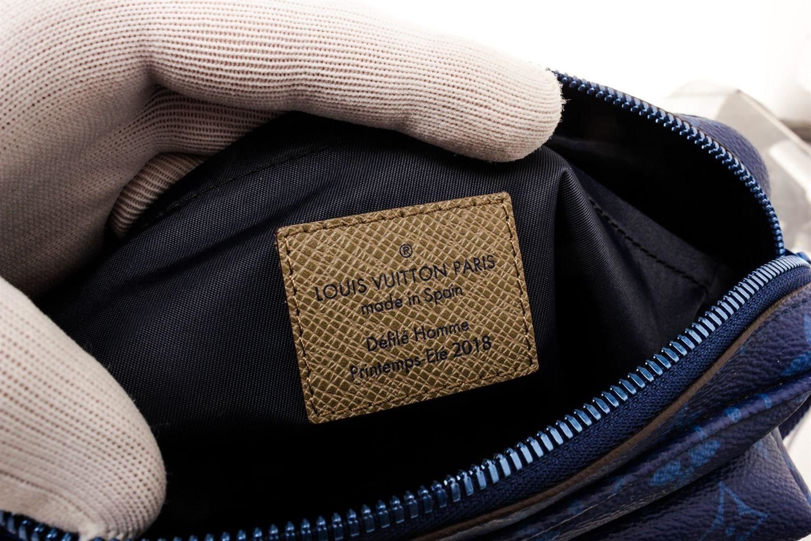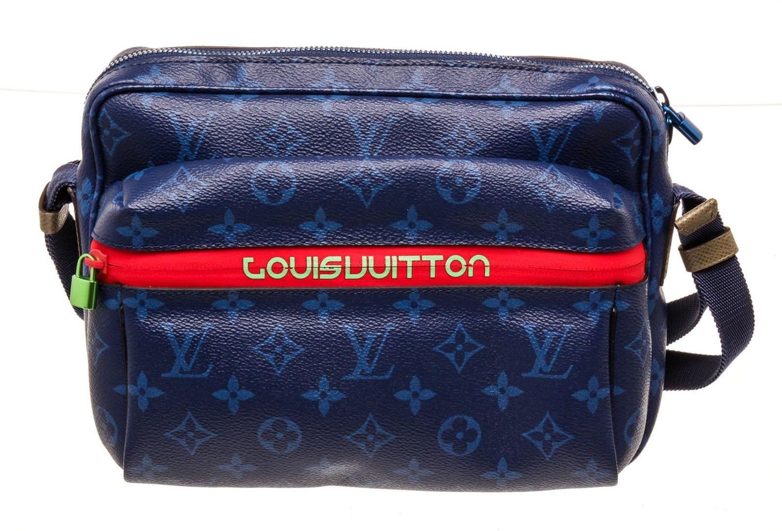 Louis Vuitton Outdoor Messenger Crossbody Blue Tigarama Monogram Coated Canvas. Brand: Louis Vuitton, Style: Outdoor Messenger, Type: Crossbody, Exterior Color: Blue Tigarama Monogram, Exterior Material: Coated Canvas, Exterior Pockets: One, Interior Color: N/Avy, Interior Material: Nylon, Interior Pockets: One, Closure: Zip, Handle/Strap Type: Adjustable shoulder strap, Length: 9.5", Width: 3", Height: 7", Strap Drop: 21". Condition: Louis Vuitton logo on outer zip pocket mostly worn off/peeling. Additional Information: Chrome hardware. Item is sold AS-IS and all information pertaining to this lot is available in the photos or this description.