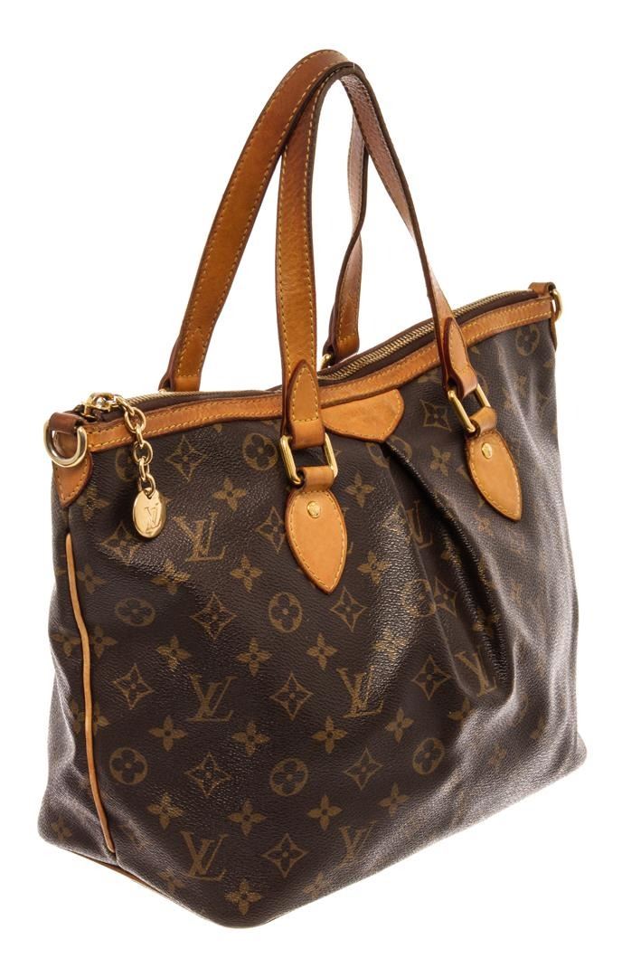Louis Vuitton Palermo PM Shoulder Bag Brown Monogram Coated Canvas. Brand: Louis Vuitton, Style: Palermo PM, Type: Shoulder Bag, Exterior Color: Brown Monogram, Exterior Material: Coated Canvas, Exterior Pockets: None, Interior Color: Brown, Interior Material: Canvas, Interior Pockets: Two Slip, Closure: Zip, Handle/Strap Type: Shoulder Strap, Length: 11.5, Width: 6, Height: 11, Handle Drop: 5, Strap Drop: 16. Condition: Vachetta is worn. Additional Information: Detachable Strap. Item is sold AS-IS and all information pertaining to this lot is available in the photos or this description.