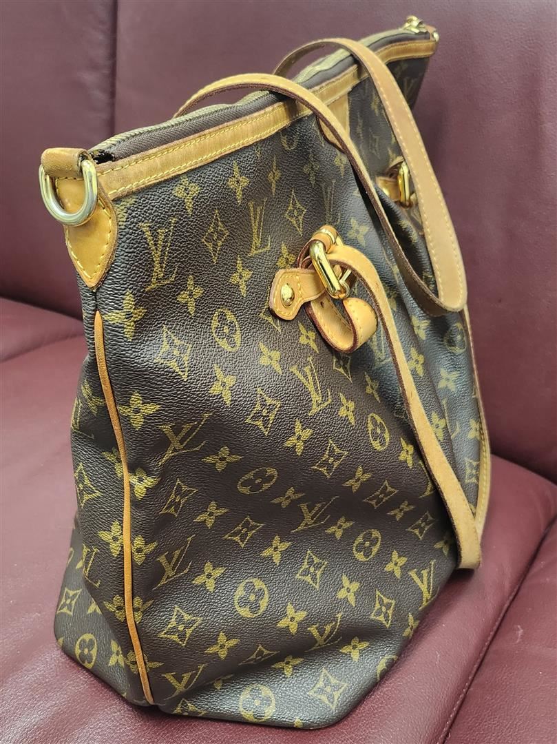 The Louis Vuitton Palermo GM Shoulder Bag, featuring the brand's iconic brown canvas, is accentuated with luxurious golden brass hardware, adding a sophisticated touch to its elegant design. Despite minor ink stains on the interior, the bag looks virtually new on the outside, with only light wear, showcasing the enduring quality and timeless appeal of Louis Vuitton's craftsmanship.
