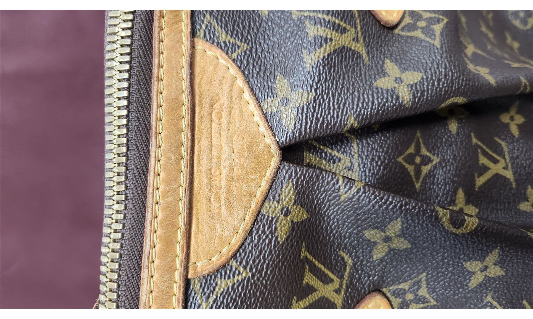 The Louis Vuitton Palermo GM Shoulder Bag, featuring the brand's iconic brown canvas, is accentuated with luxurious golden brass hardware, adding a sophisticated touch to its elegant design. Despite minor ink stains on the interior, the bag looks virtually new on the outside, with only light wear, showcasing the enduring quality and timeless appeal of Louis Vuitton's craftsmanship.