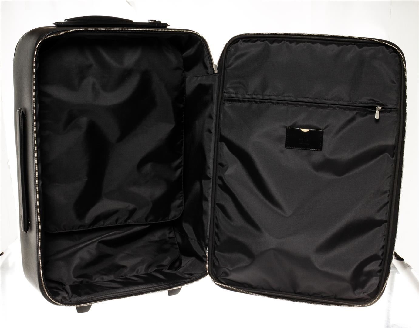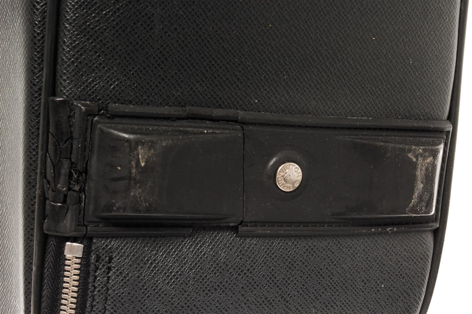 Louis Vuitton Pegase 60cm. All available information is listed in the description and shown in the photos. Louis Vuitton Pegase 60cm Black Taiga Leather. Features gold hardware, one interior pocket, black taiga leather exterior, and a silver zipper closure.