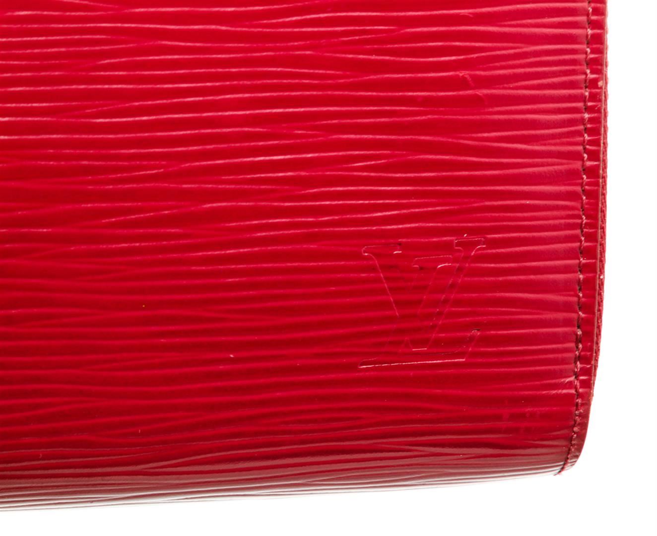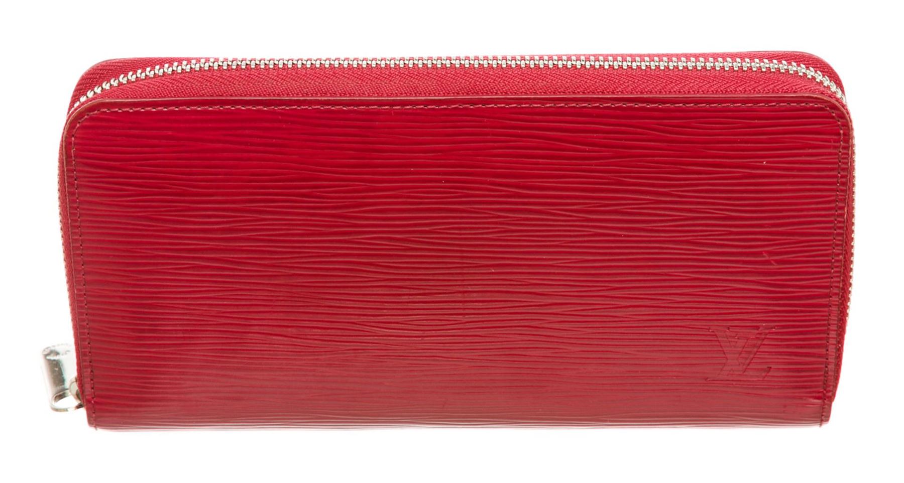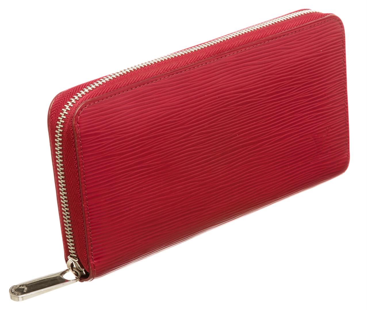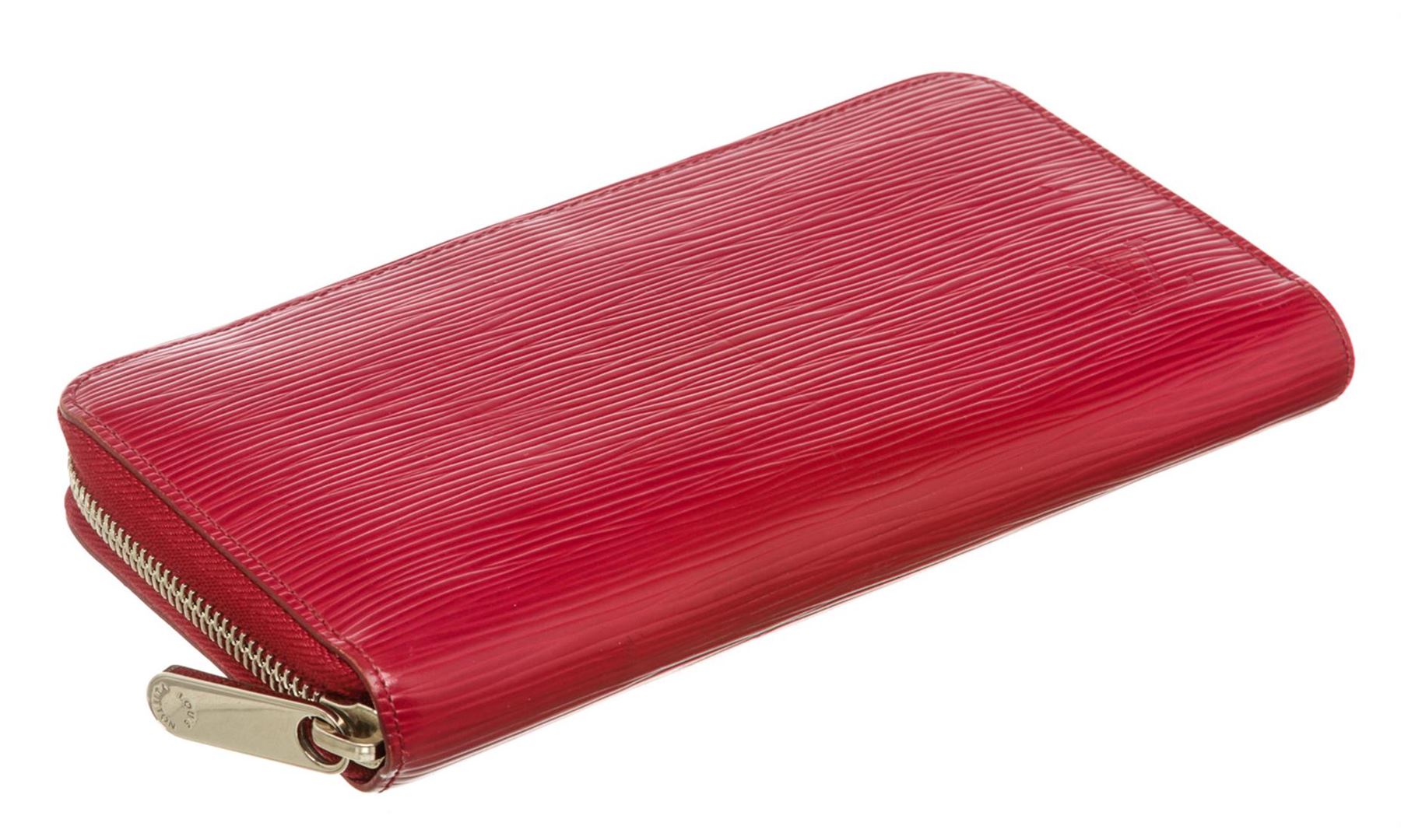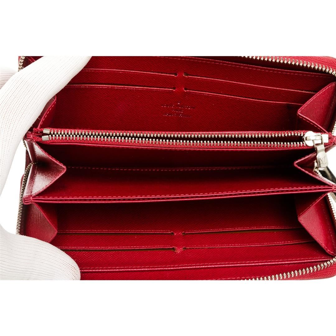 Pink Epi leather Louis Vuitton Zippy wallet with silver-tone hardware, tonal leather lining, dual bill compartments, single zip pocket at interior wall, ten card slots and zip-around closure. Authentic.