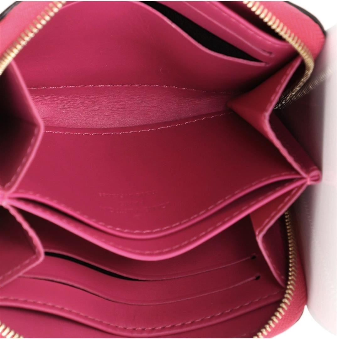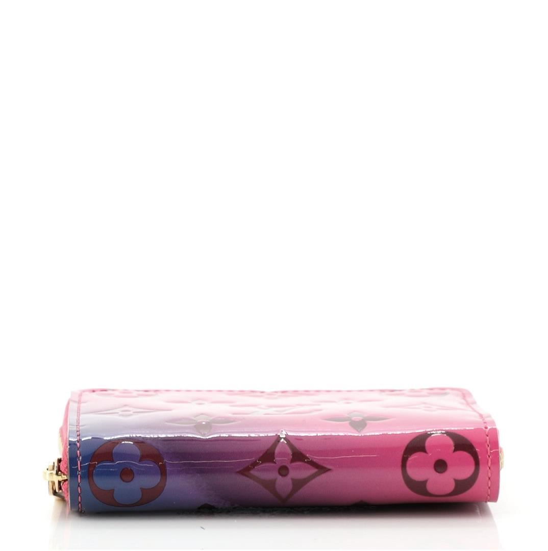 Pink Gradient Monogram Vernis leather of Louis Vuitton Zippy coin purse with gold-tone hardware, tonal leather lining, dual interior compartments, six card slots and zip-around closure.