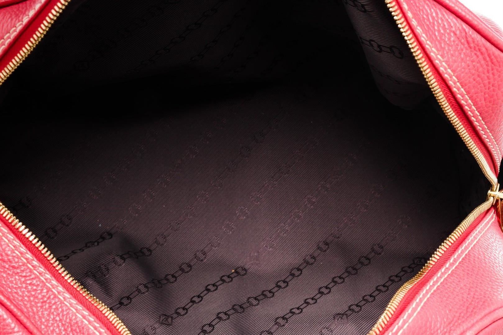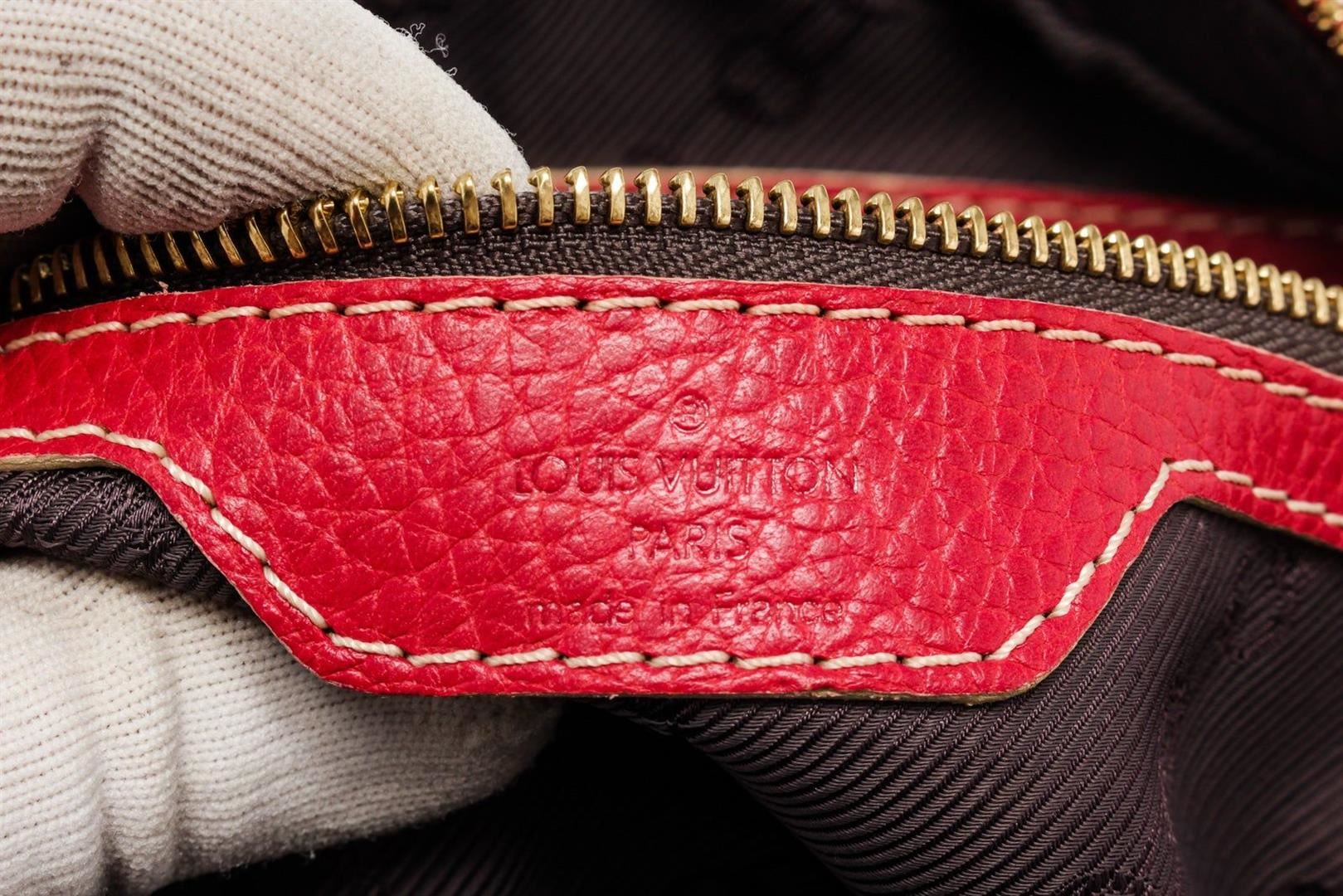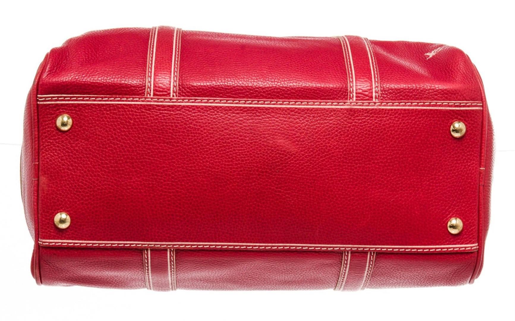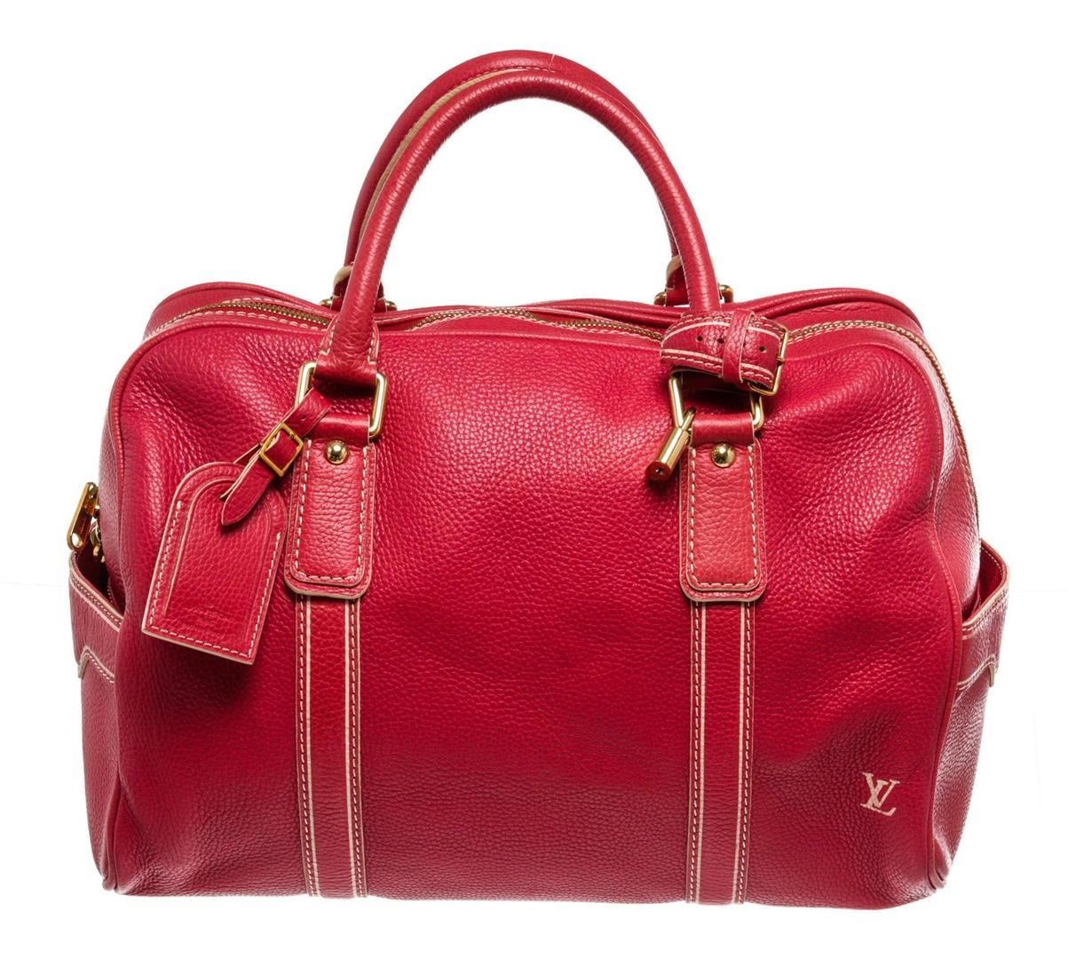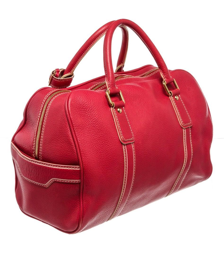 Louis Vuitton Pink Leather Carryall Duffel Bag with silver-tone hardware, black piping and leather trim, dual rolled top handles, dual exterior slit pockets at sides, black jacquard woven lining, single zip pocket at interior wall and two-way zip closures at top.