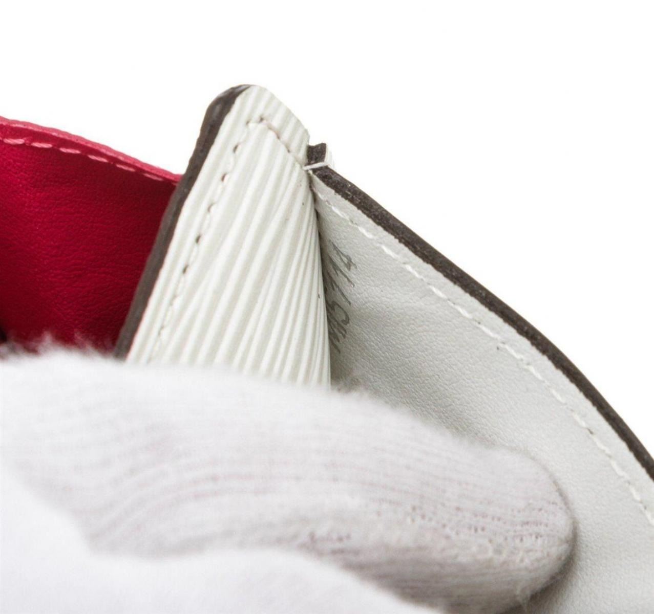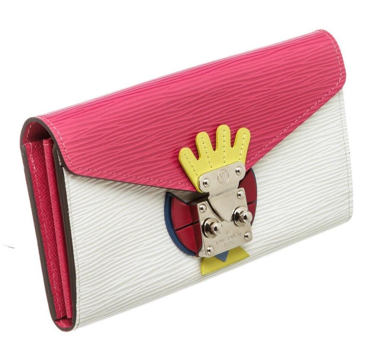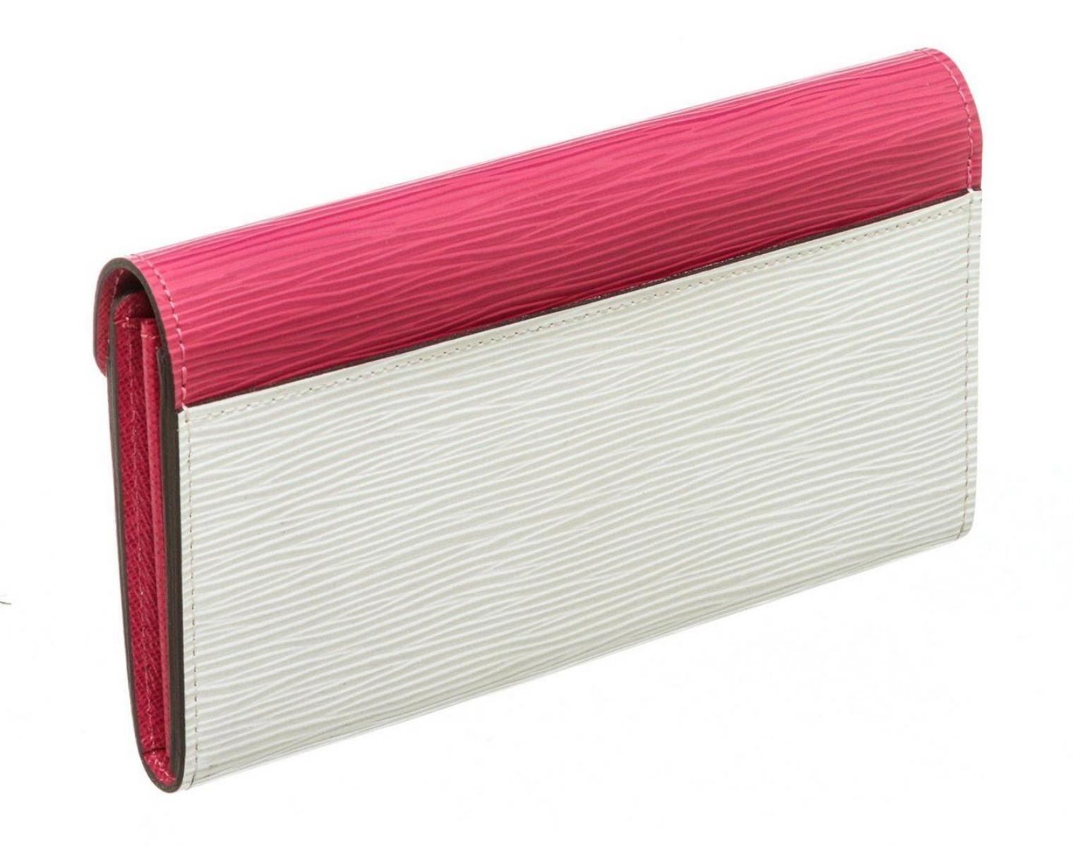 Pink and white multicolor Epi leather Louis Vuitton Tribal Mask Sarah wallet with silver-tone hardware, multicolor leather mask detail at front, exterior slit pocket at back, dual card slots and front flap underside, pink textured leather lining, three interior compartments; one with zip closure, 12 card slots, single bill compartment at interior wall and S-lock closure at front flap. Measurements: Length: 7.25 in / 18 cm Width: 1 in / 3 cm 4.25 in / 11 cm Condition: Pre-Owned Good overall, please see photographs for detail.