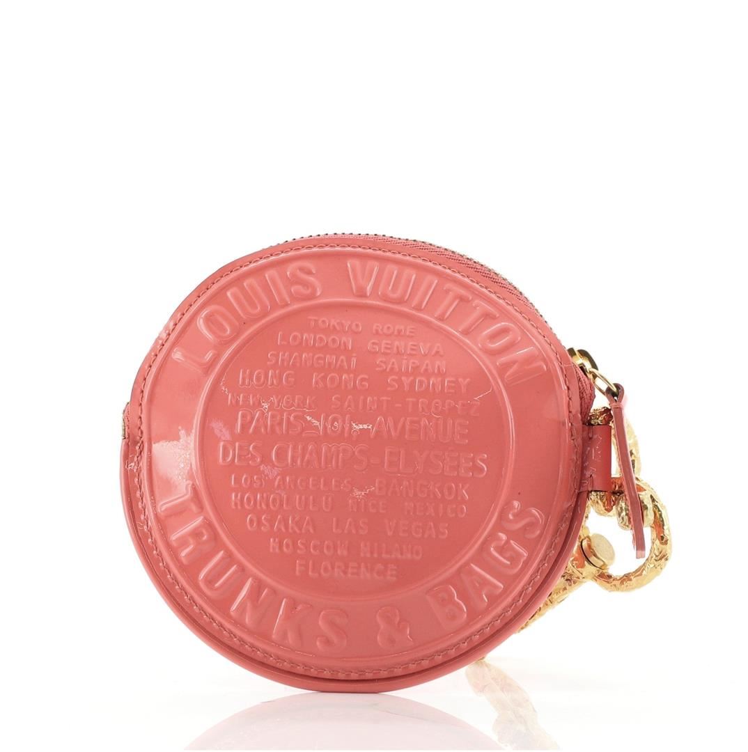 Louis Vuitton Pink Vernis Leather Trunks and Bags Coin Purse features pink Vernis leather and is finished off a hammered gold-tone chain and hook latch.
