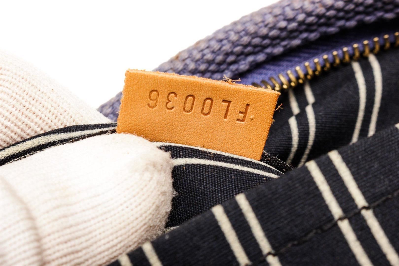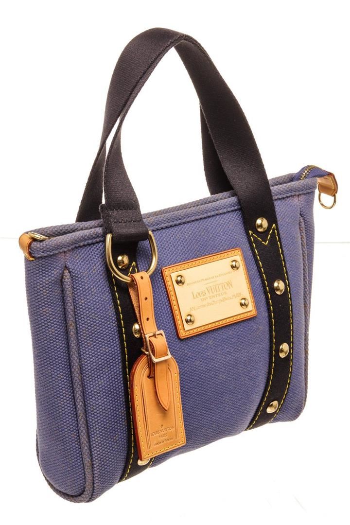 Louis Vuitton Purple Canvas Cabas Antigua PM Tote Bag with canvas, gold-tone hardware, trim leather, interior slip pockets, shoulder strap and zipper closure.