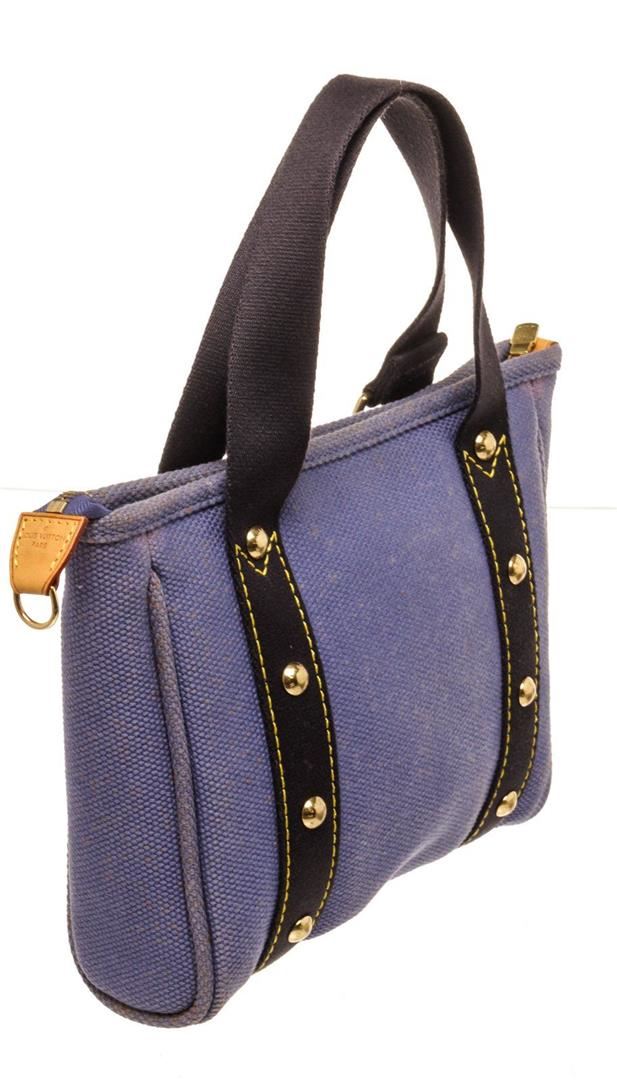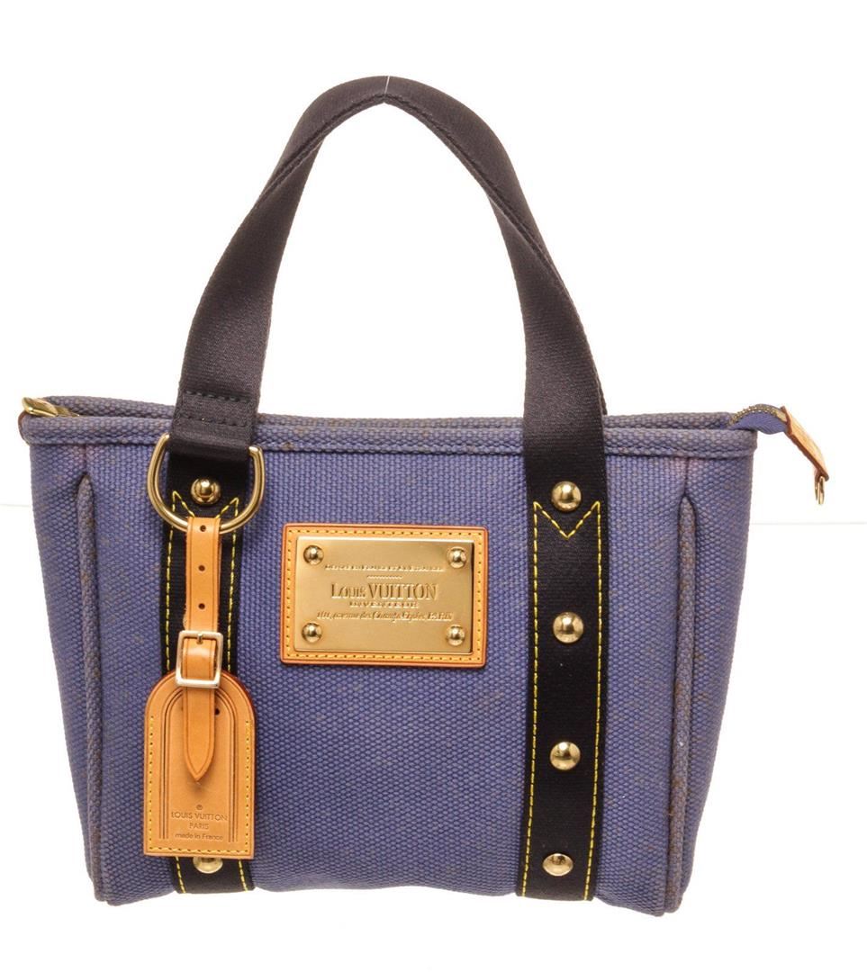 Louis Vuitton Purple Canvas Cabas Antigua PM Tote Bag with canvas, gold-tone hardware, trim leather, interior slip pockets, shoulder strap and zipper closure.