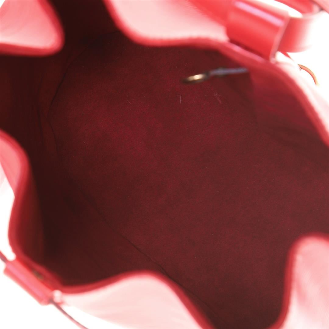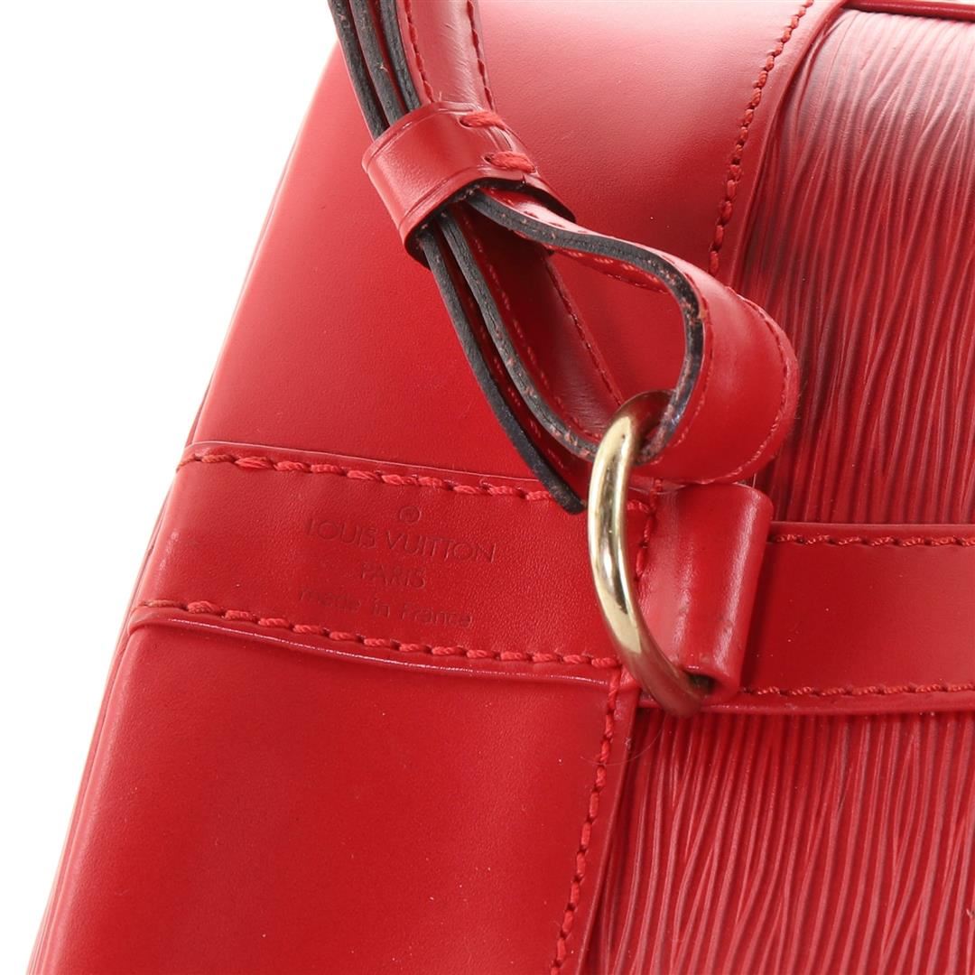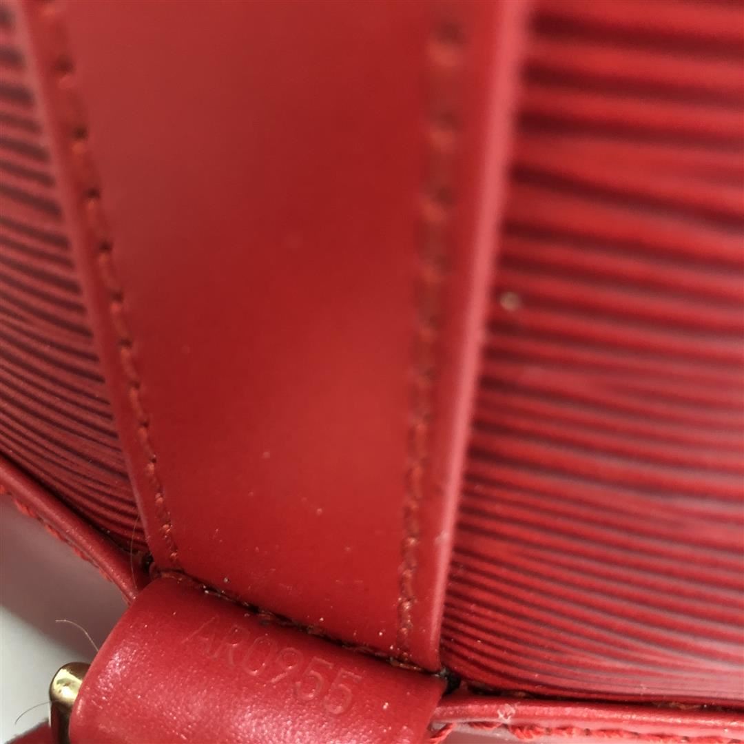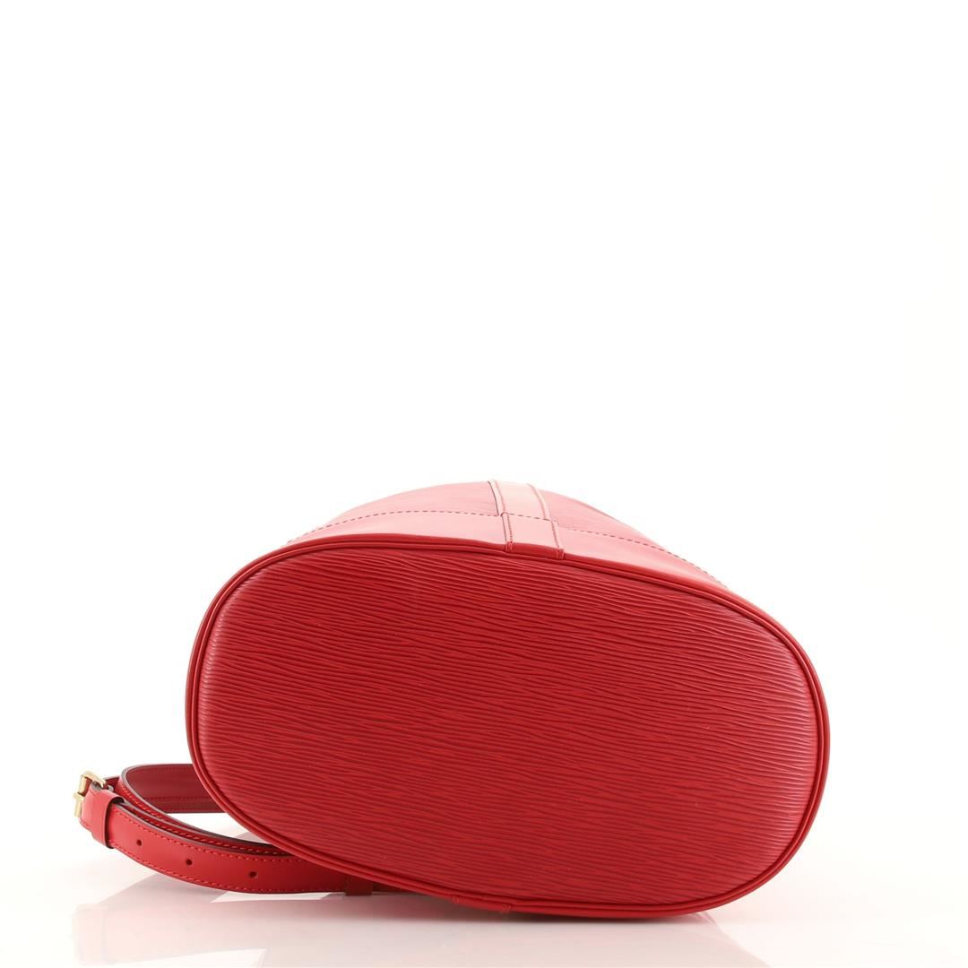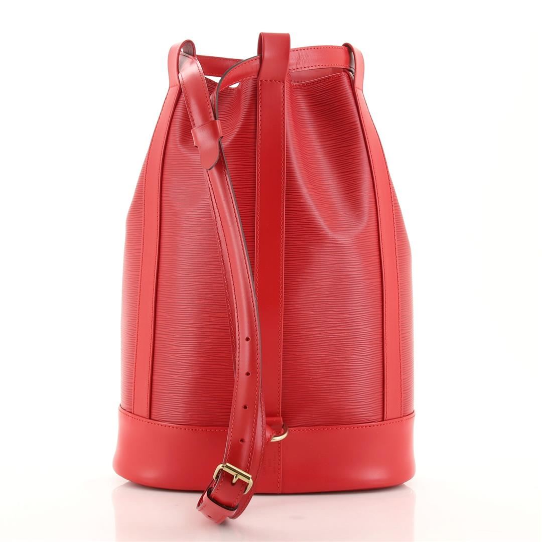 Louis Vuitton Randonnee Backpack Epi Leather PM. Light creasing on exterior. Heavy cracking on strap wax edges and opening wax edges, minor wear in interior. Small stain on interior base scratches and tarnish on hardware.