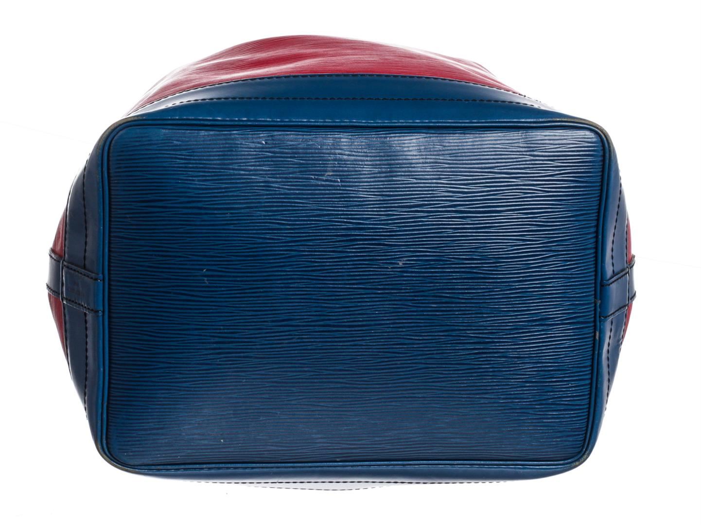 Red and Blue Epi leather Louis Vuitton Noe GM with brass hardware, single adjustable shoulder strap, tonal leather trim, embossed logo at exterior side, Alcantara lining and drawstring closure at top. Authentic.