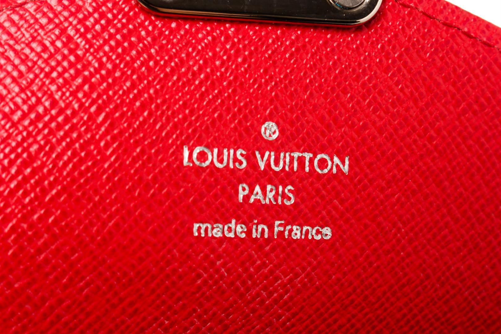 One Louis Vuitton Red Blue Leather Tribal wallet. Item is sold AS-IS. All available information is listed in the description and shown in the photo. Louis Vuitton Red Blue Leather Tribal wallet with leather, gold-tone hardware, trim tan vachetta leather, interior three compartments pocket and push lock closure.