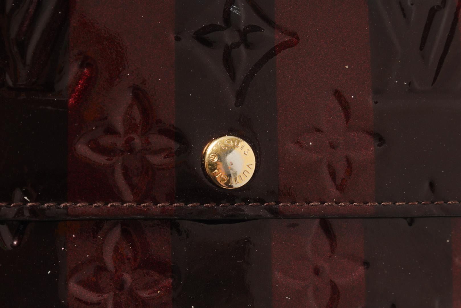 One Louis Vuitton Red Brown Vernis Leather Sarah Wallet. Item is sold AS-IS. All available information is listed in the description and shown in the photo. louis vuitton red brown leather sarah wallet.