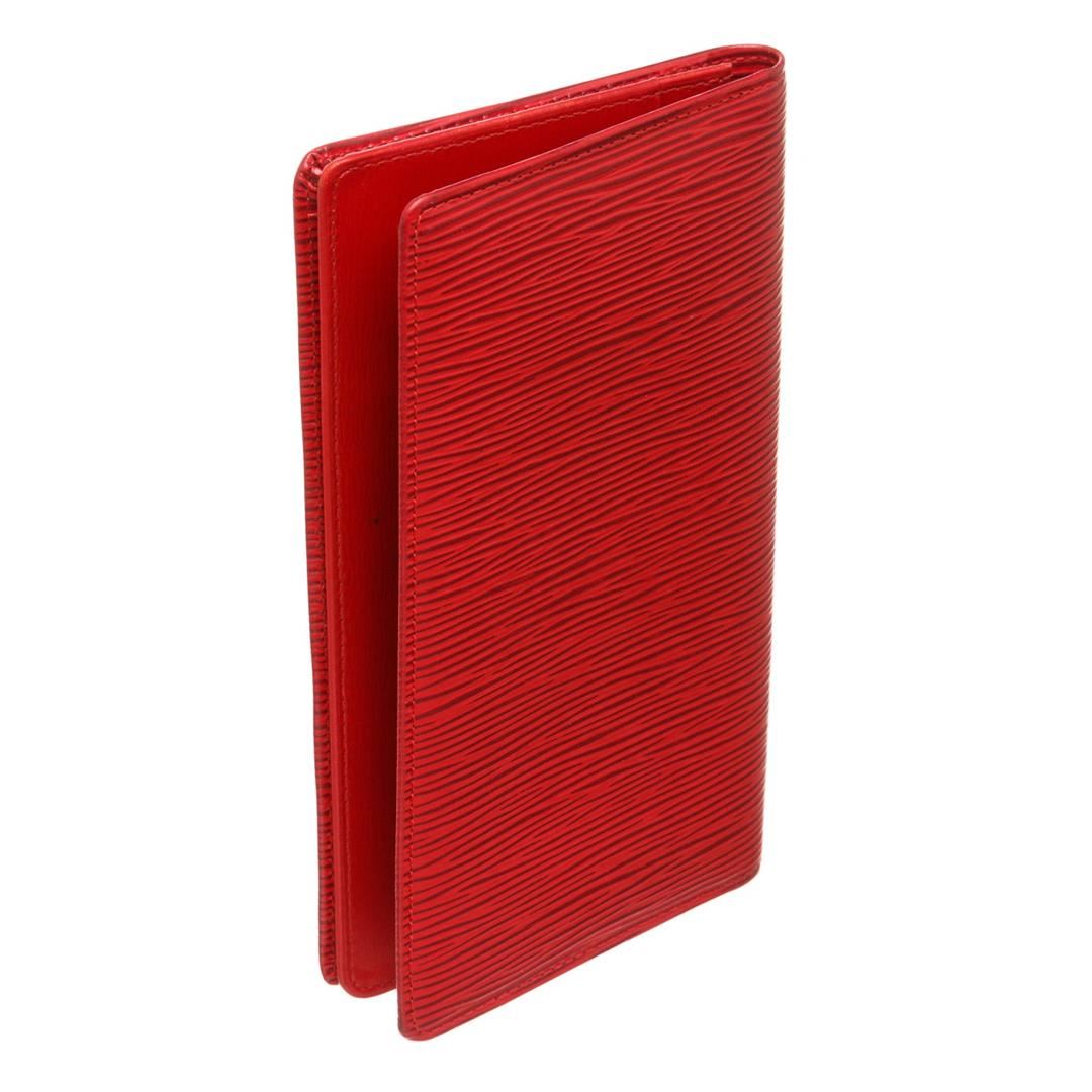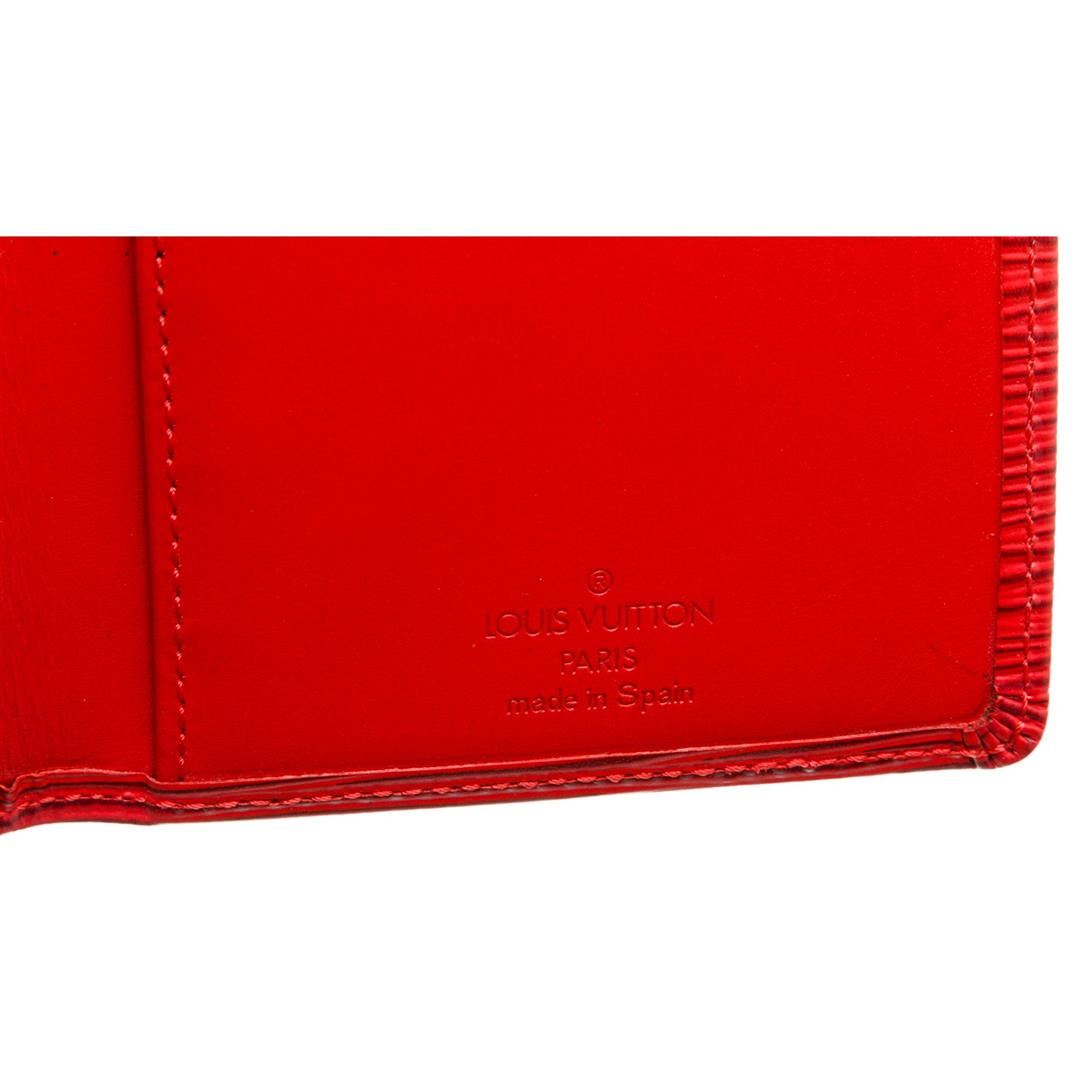 Brown red epi leather, six credit card slots, and dual bill compartments. Authentic.