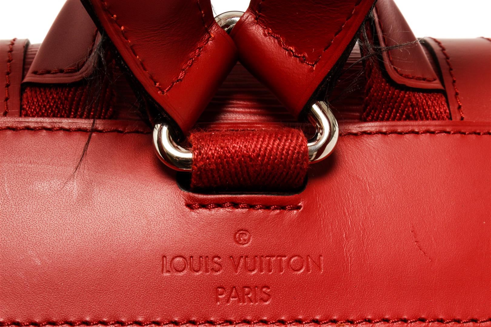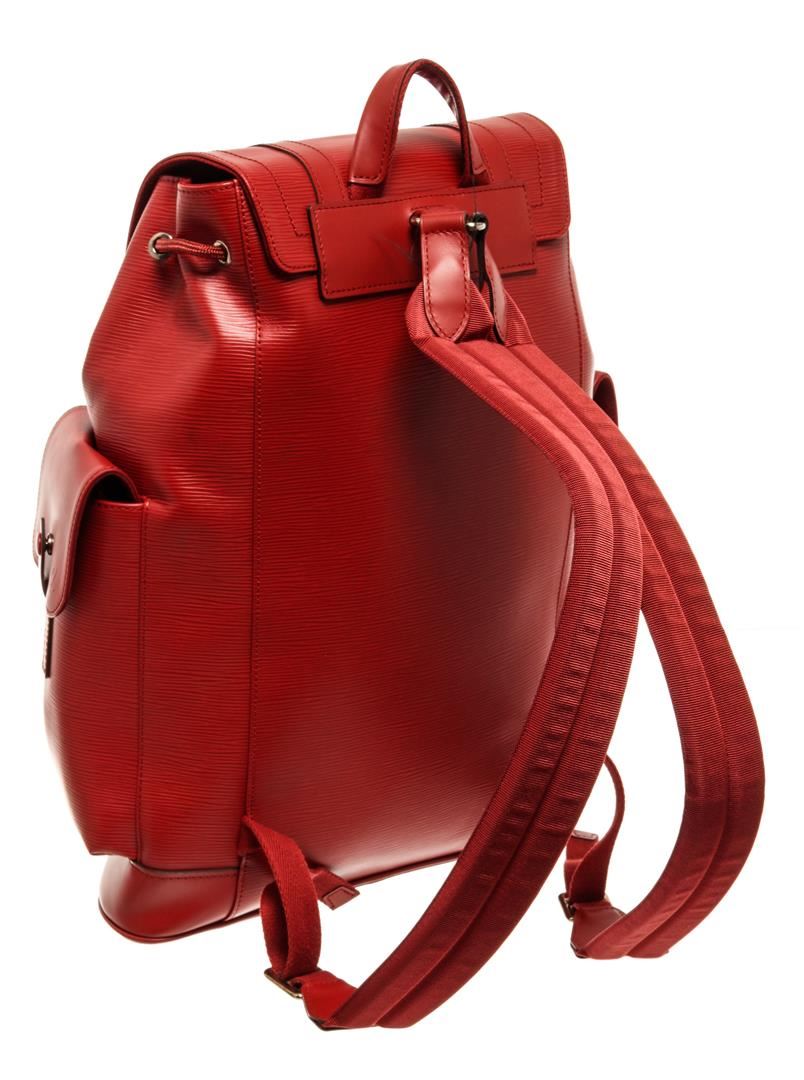 One Louis Vuitton Red Epi Leather Christopher PM Backpack Bag. Item is sold AS-IS. All available information is listed in the description and shown in the photo. Louis Vuitton Red Epi Leather Christopher PM Backpack Bag with epi leather, gold-tone hardware, exterior slip pocket, interior zip pocket, shoulder strap and snap closure.