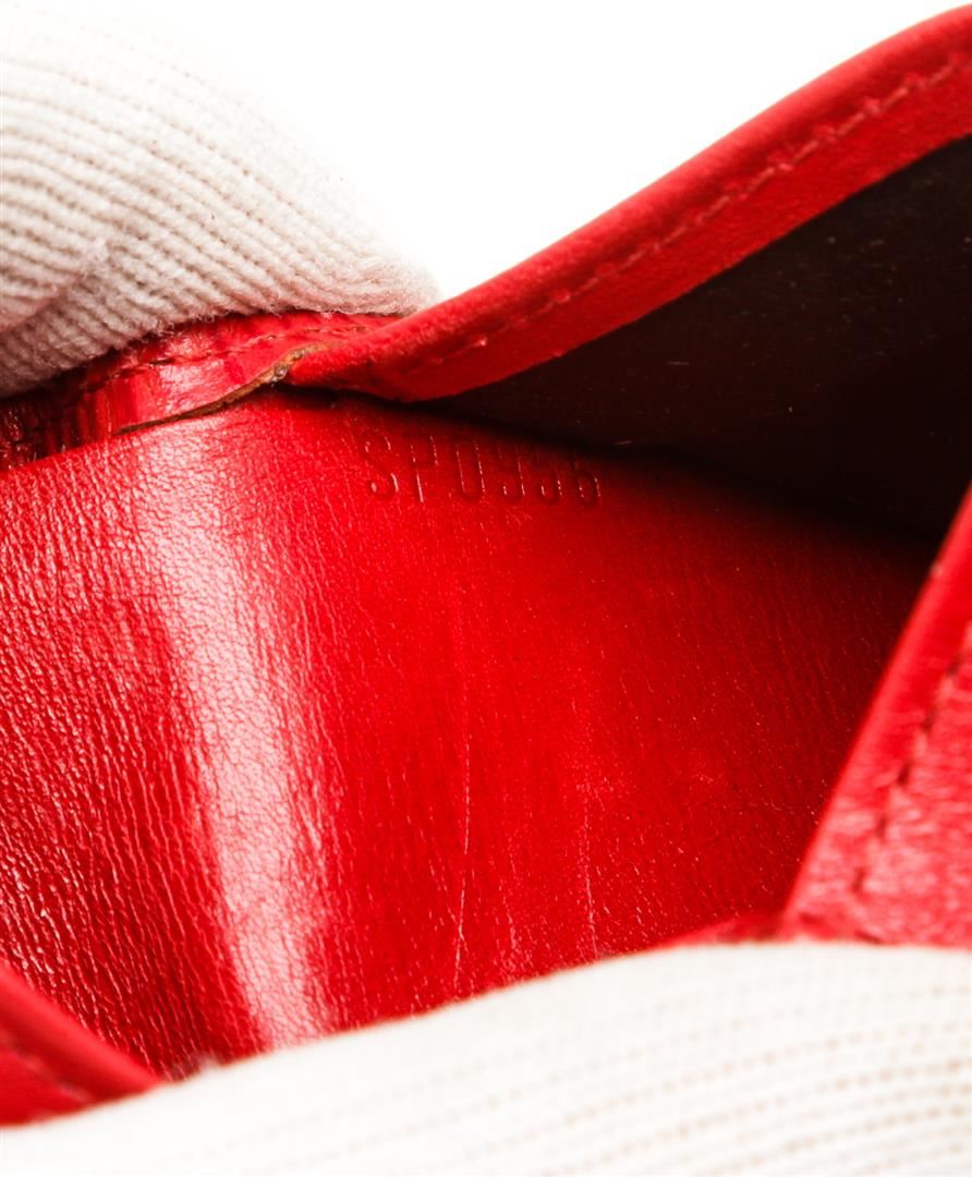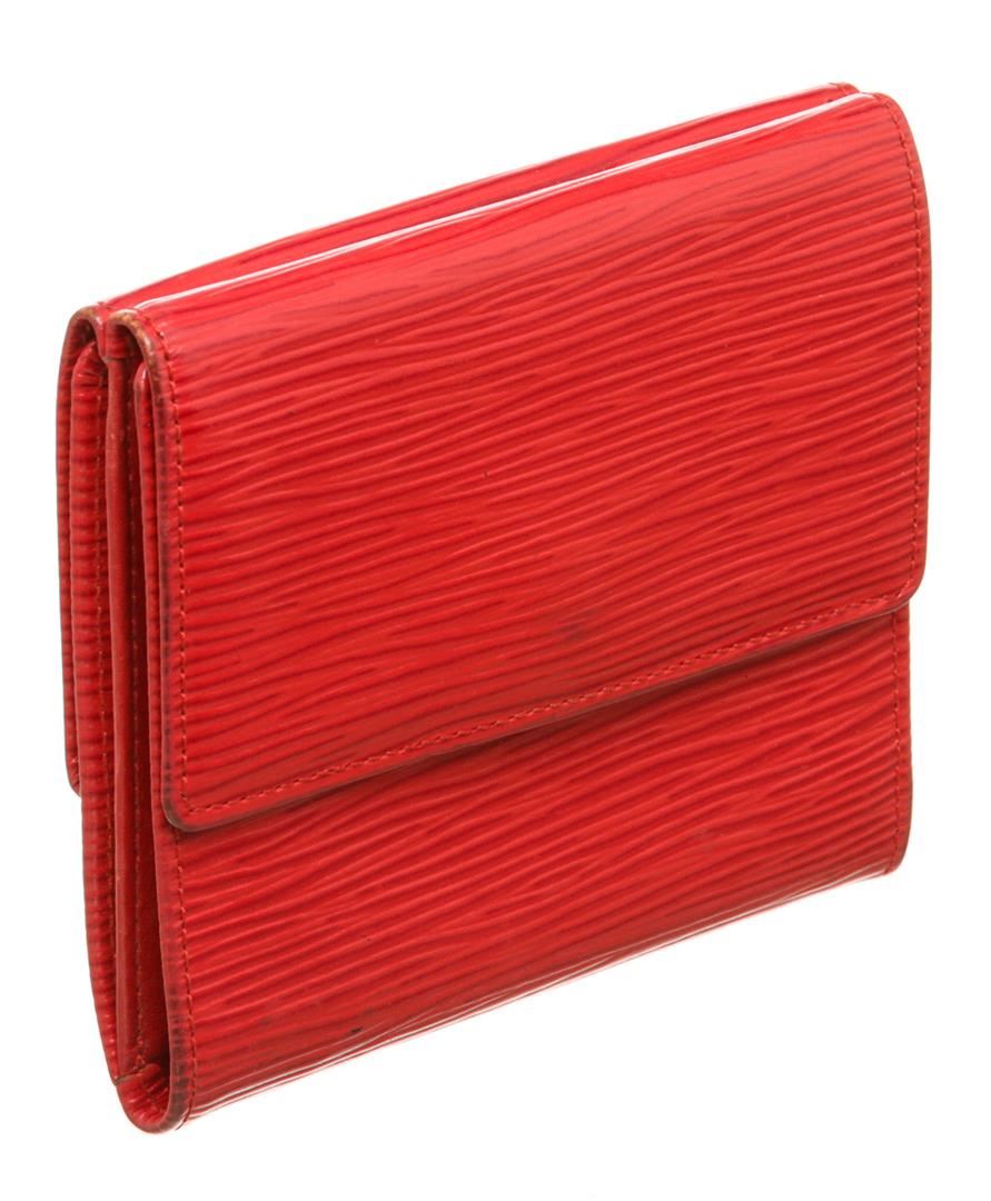 Red Epi leather Louis Vuitton Elise wallet with gold-tone hardware, single pocket at front with snap closure, tonal leather lining, single bill compartment, six card slots and snap closure at back.
