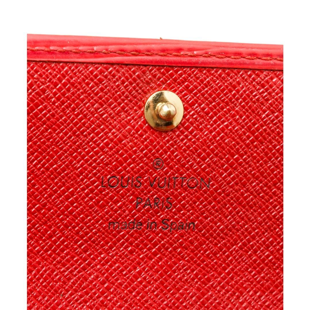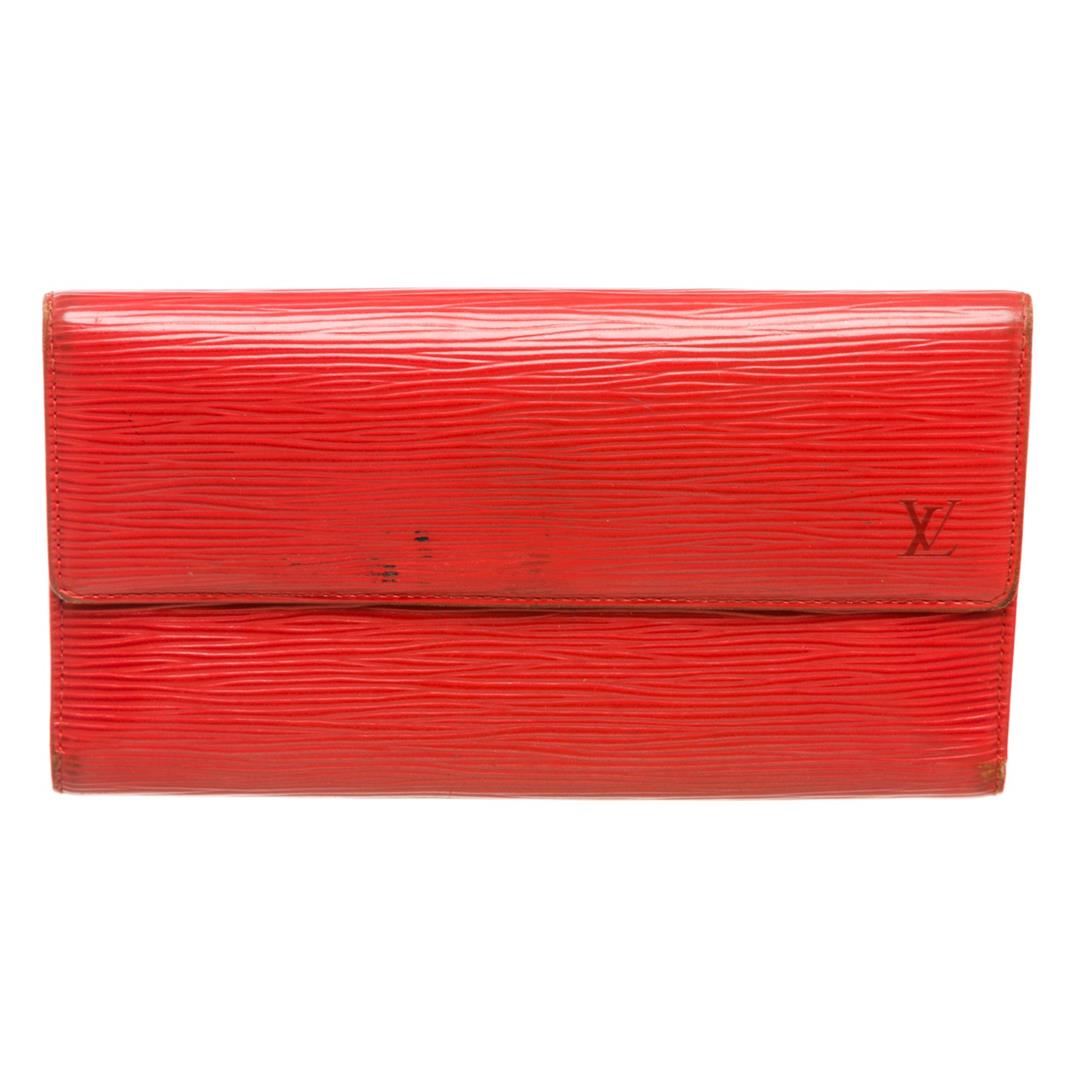 Red Epi leather Louis Vuitton International wallet with brass hardware, embossed logo accent at front face, tonal leather lining, single flap pocket at interior wall with snap closure, dual bill compartments, six card slots, single pen holder and snap closure at front flap. Authentic.