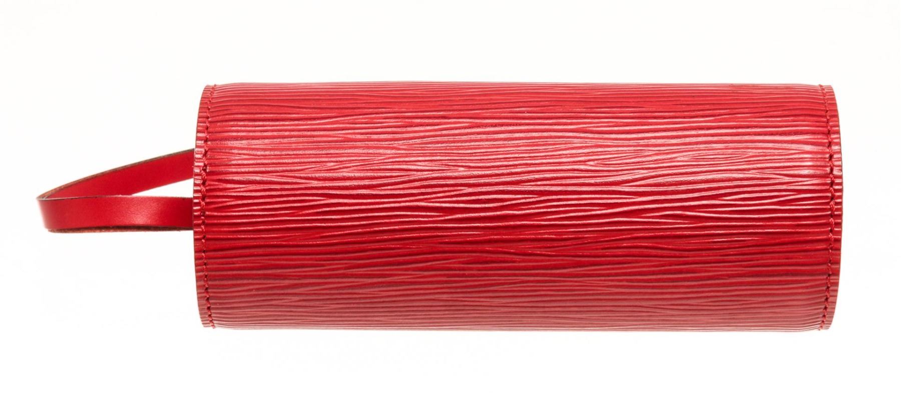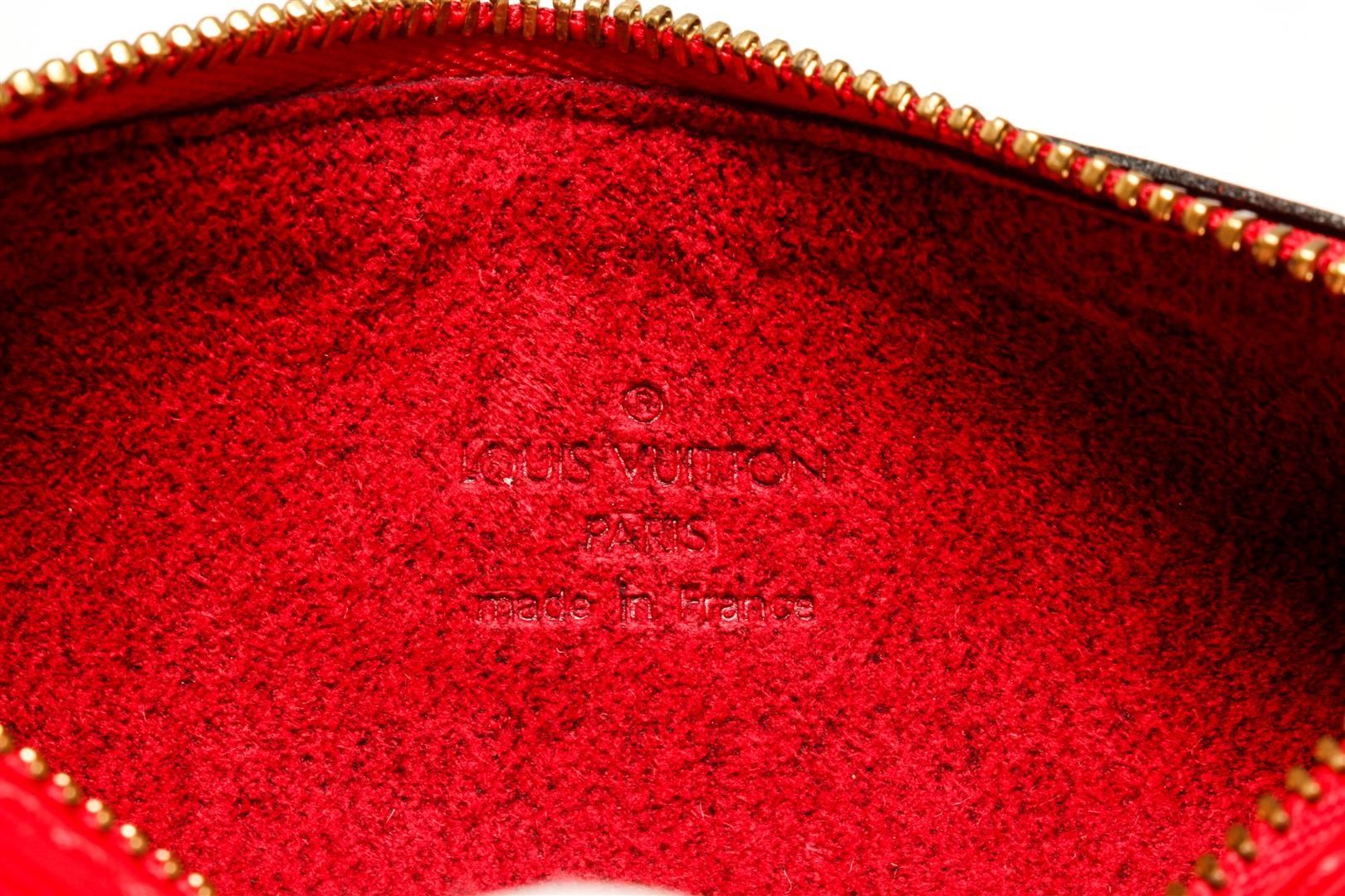 One Louis Vuitton Red Epi Leather Mini Papillon. Item is sold AS-IS. All available information is listed in the description and shown in the photo. Louis Vuitton red epi leather Mini Papillon with embossed logo on the exterior, red suede lining, gold-tone hardware, zipper closure, one compartment, and top handle with a hook (can be worn as a wristlet).