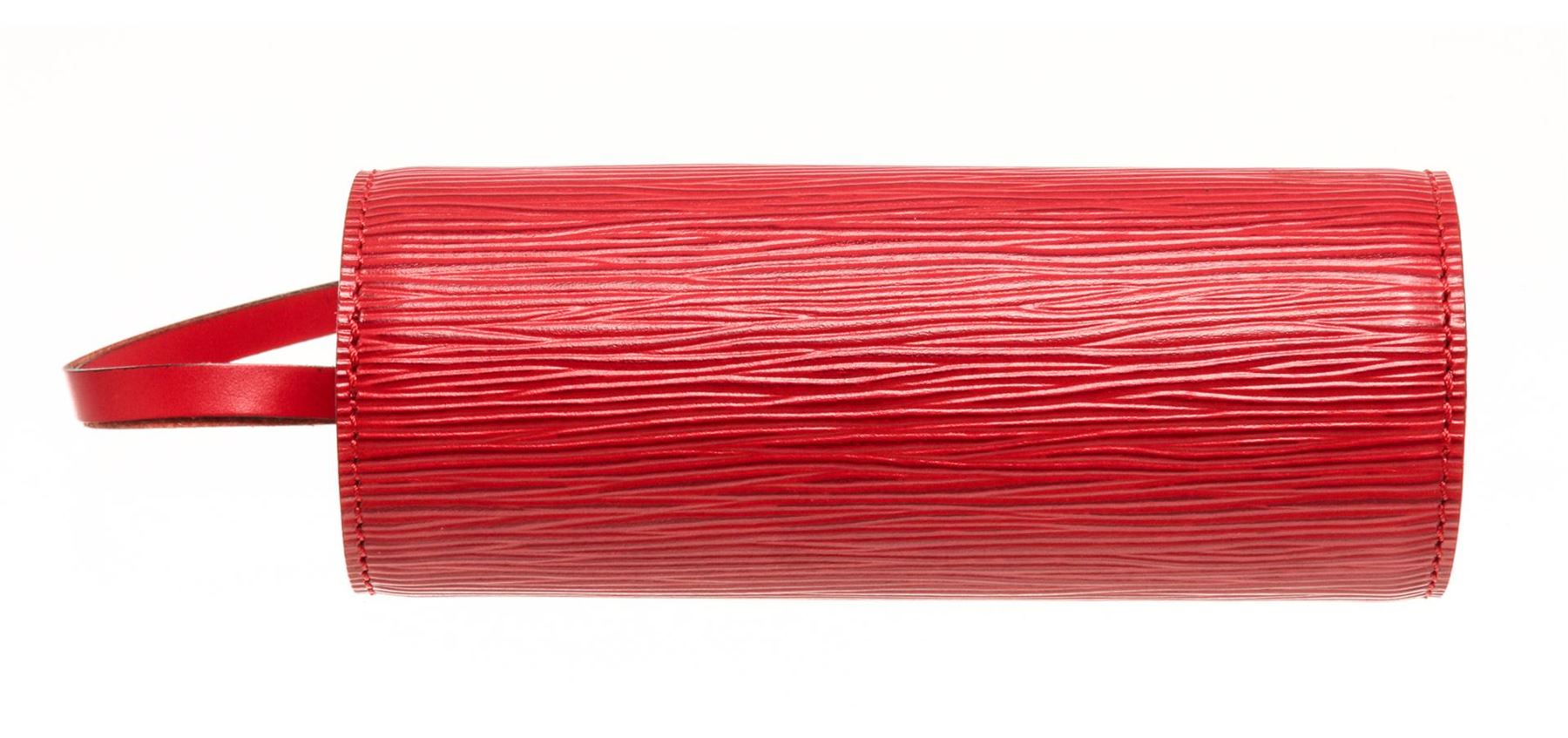 One Louis Vuitton Red Epi Leather Mini Papillon. Item is sold AS-IS. All available information is listed in the description and shown in the photo. Louis Vuitton red epi leather Mini Papillon with embossed logo on the exterior, red suede lining, gold-tone hardware, zipper closure, one compartment, and top handle with a hook (can be worn as a wristlet).
