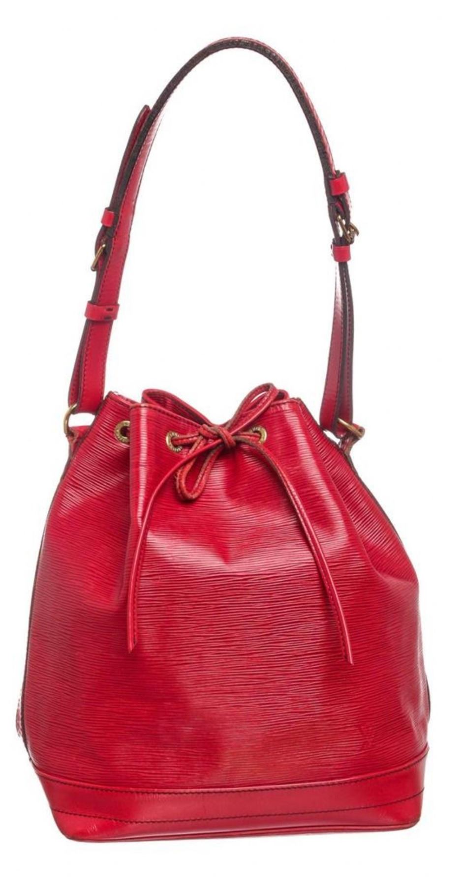Red Epi leather Louis Vuitton Noe GM with brass hardware, single adjustable shoulder strap, tonal leather trim, embossed logo at exterior side, Alcantara lining and drawstring closure at top. Measurements: Length: 12.5 in / 32 cm Width: 7.5 in / 19 cm 15 in / 38 cmCONDITION: Pre-Owned Good overall, please see photographs for detail.