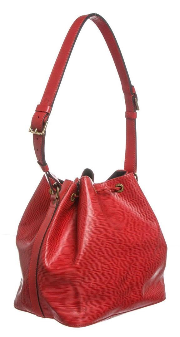 Epi leather Louis Vuitton Noe PM with brass hardware, adjustable flat shoulder strap, tonal Alcantara lining and drawstring closure at top. Measurements: Length: 10 in / 25 cm Width: 7.5 in / 19 cm 7.5 in / 19 cm Condition: Pre-Owned Good overall, please see photographs for detail.