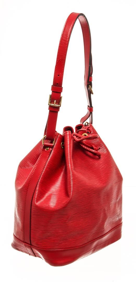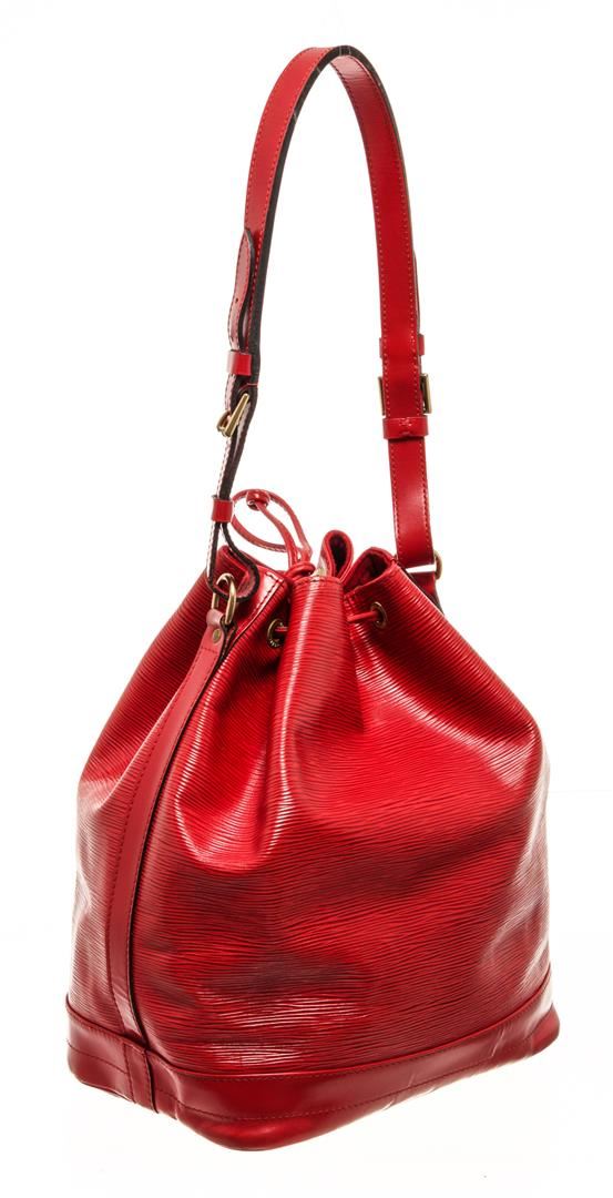 One Louis Vuitton Red Epi Leather Noe Shoulder Bag. Item is sold AS-IS. All available information is listed in the description and shown in the photo. louis vuitton red epi leather petit noe shoulder bag (HxWxD): 34.5cm x 26.5cm x 18.5cm / 13.58'' x 10.43'' x 7.28''